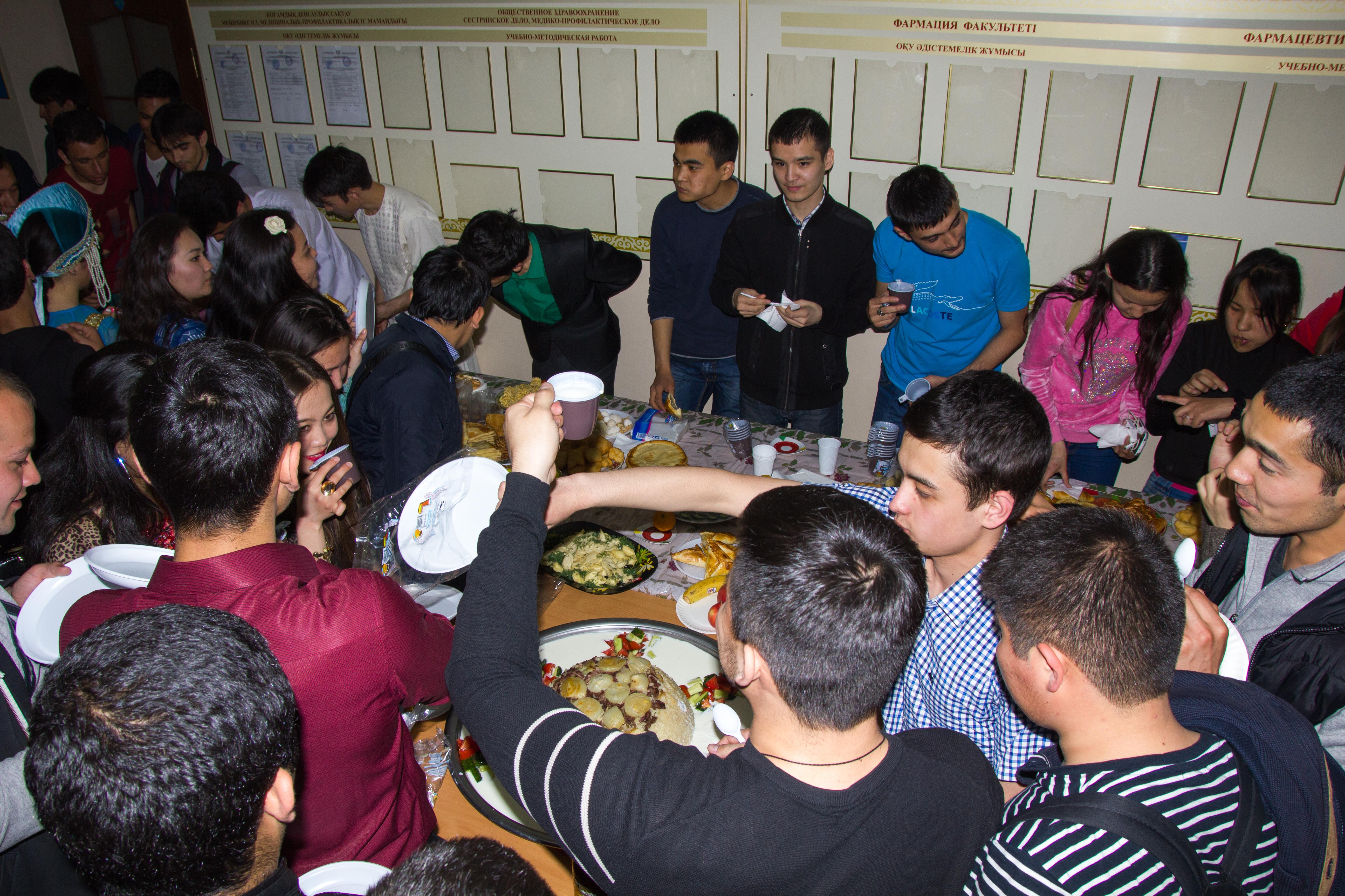 В рамках празднования Дня единства народа Казахстана на кафедре патологической физиологии студентов ознакомили с культурными традициями, танцами и песнями народов проживающих на территории РК. Активное участие приняли студенты 2 курса факультета ОМ группы 28-1, 28-2, 31-1, 33-2, 34-2, 36-2, 37-2, 39-2, 40-2, 42-1, 43-2, накрыли столы с элементами национальной кухни. Всех участников праздничного мероприятия угостили национальными блюдами (ответ. Ким Т.А.)