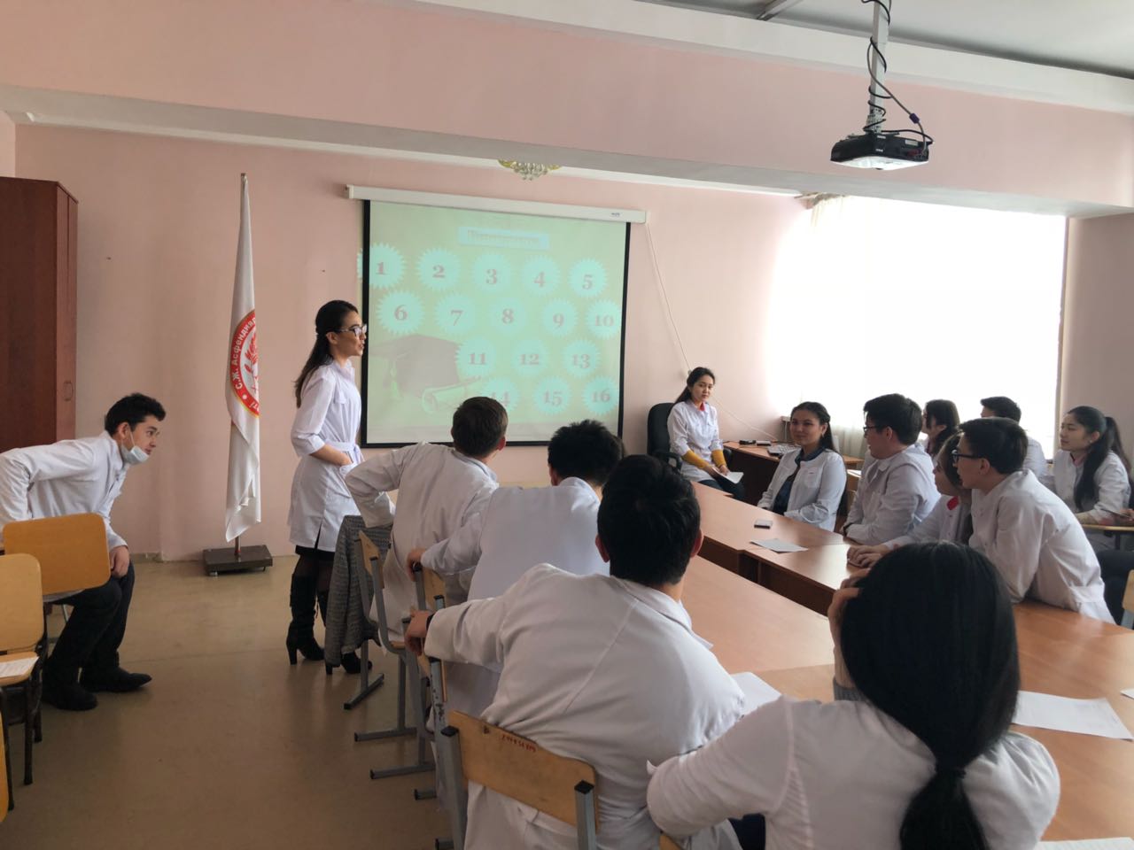 К подготовке данного мероприятия, студенты подошли с большой ответственностью. Спикерами подготовлены интересные доклады о статистике ВИЧ/ СПИД в РК (Анарбай Казына, 070-2 гр), теории происхождения ВИЧ (Самбет Санжар, 070-1 р), о путях передачи ВИЧ инфекции среди подростков и молодежи (Маделханкызы З., 070-1 гр.). Аралбаева Дарига рассказала о глобальных целях и задачах по профилактике ВИЧ-инфекции в РК к 2030 г. «90-90-90» (ЮНЭЙДС, 2014г.), направленных на прекращение эпидемии СПИДа. Студентами снят видеоролик (Эпен Нурдаулет, Салманова Асем, 070-1 гр.) «Нет дискриминации ВИЧ-инфицированных», в котором они сами снимались в качестве актеров (Мырзамурадов Асад, Достай Аида, Надырова Сайера, Эргашбаева Захро,). Сахметовой Камиллой и Ким Светланой была подготовлена викторина, которая вызвала интерес у студентов. Обсуждались вопросы о путях передачи (может ли ВИЧ передаваться через инструменты в салонах красоты и тату-салонах и почему? Как заражаются ВИЧ подростки? и т.д.), мерах профилактики ВИЧ-инфекции. Для студентов были подготовлены тесты по предоставленному материалу.