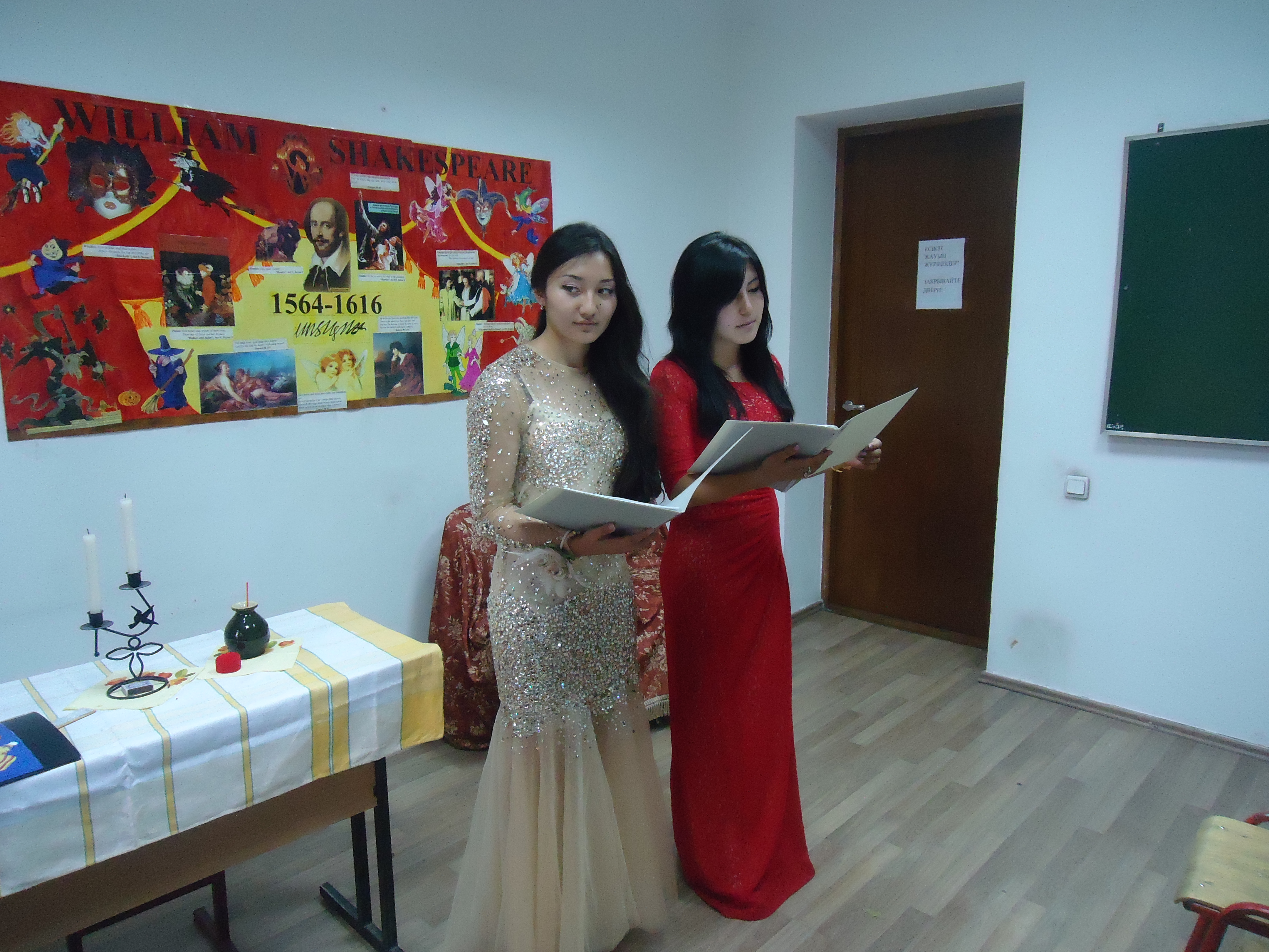 Во время литературного вечера студенты показали основные «классические» сцены из самых известных трагедий и комедий В. Шекспира: «Макбет», «Ромео и Джульетта», «Сон в летнюю ночь», а также прочитали Сонеты № 130, 154.