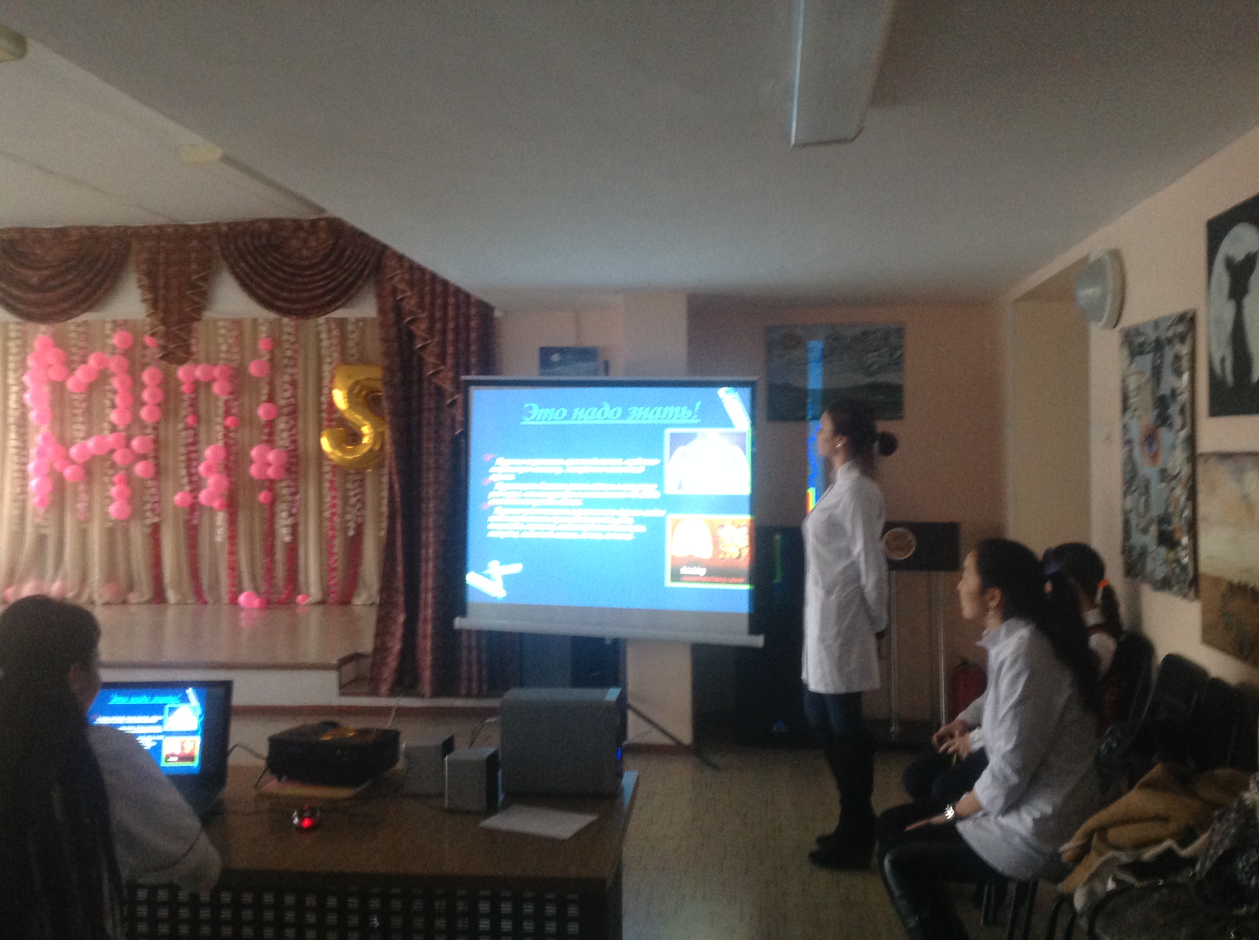 17-18 марта 2015 года сотрудники кафедры иммунологии в гимназии №56 г. Алматы организовали цикл лекций, приуроченный к Всемирному Дню здоровья «Образ жизни и иммунитет» жизни с целью пропаганды здорового образа. Лекции проведены с участием в мероприятии 120 школьников старших классов. Активное участие в акции приняли интерны — Хисамутдинова А., Борончиева А., магистранты — Аубакирова С., Курача К., резидент Рахметова А. Темы лекций – «СПИД не спит», «Вредные привычки и иммунитет», «Влияние современных гаджетов на организм», «Туберкулез и иммунитет», «Новости биомедицины». Была проведена в интерактивной форме обратная связь, в которой школьники приняли активное участие.