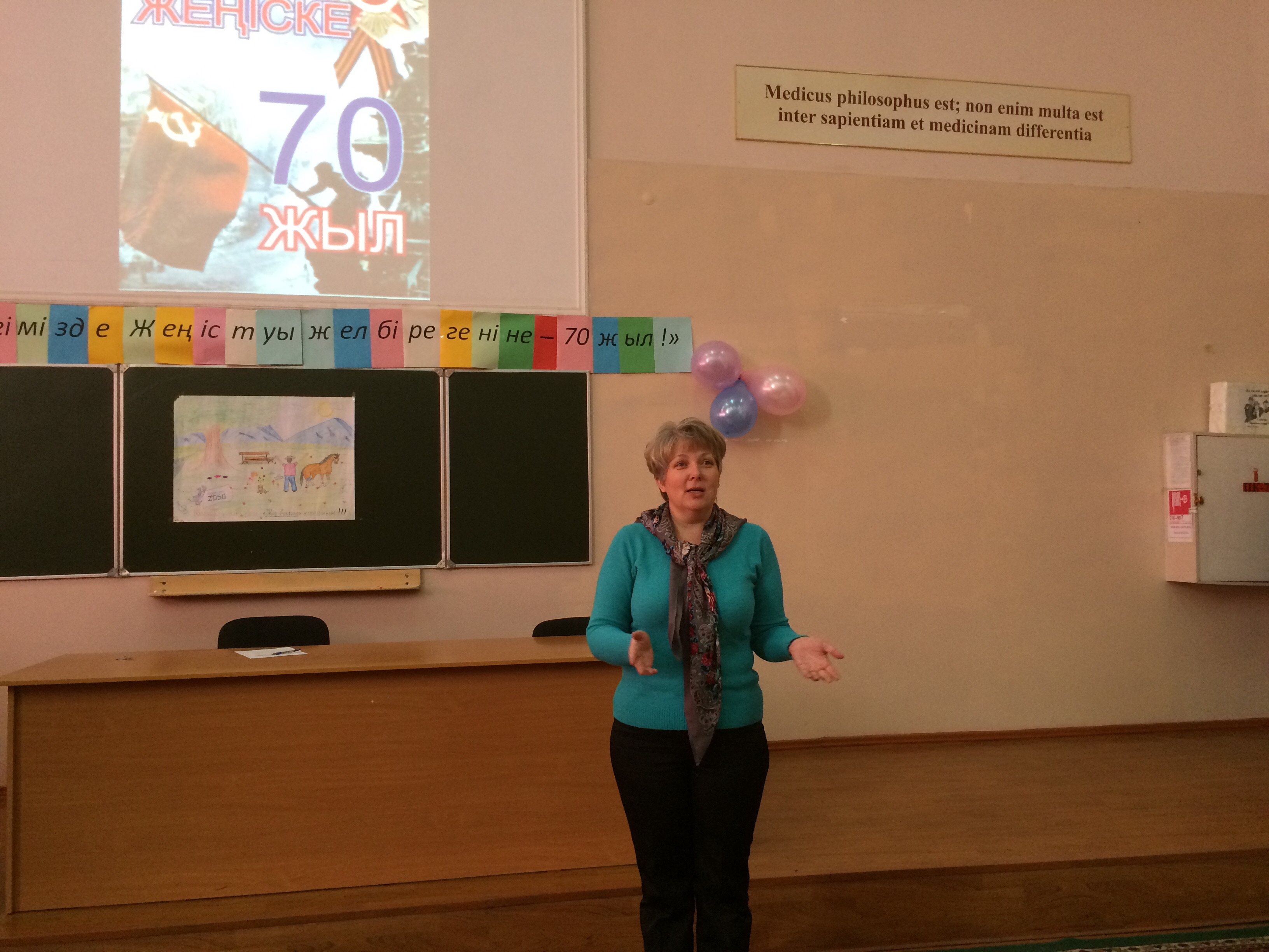 В конце вечера, посвященного 70-летию Славной Победы в Великой Отечественной Войне 1941-1945 гг. со словами поздравления, пожелания и благодарности выступили руководитель модуля нормальной физиологии Е.М.Рослякова, доцент модуля нормальной физиологии Н.С.Байжанова, старшие преподаватели модуля нормальной физиологии: А.С.Алипбекова, Р.М.Шайхынбекова, старший преподаватель военной кафедры, подполковник медицинской службы А.Т.Лесбаев. Вечер, посвященный 70-летию Славной Победы в Великой Отечественной Войне 1941-1945 гг. был организован и проведен на достойном, высоком уровне.