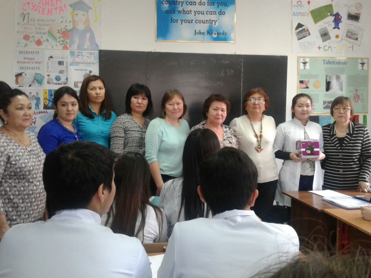 Целью этого мероприятия явилось: познакомить студентов с историей праздника 8 марта, с известными женщинами мира и Казахстана, развить нравственно-позновательные интересы. На данном мероприятие присутствовали зав.кафедрой, доцент Сулейменова О.Я. и завуч кафедры Садыкова А.А. Студенты факультета «Фармация»  группы 13-003 (2),факультета «Общая медицина»группы 16-004(2) и факультета стоматология группы 16-002(2) принимали участие.
