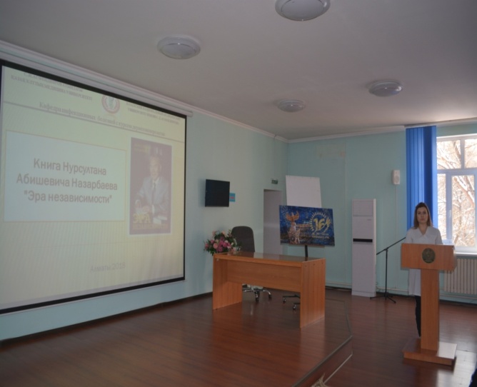 Докладчик Коскасиди Николета донесла слушателям 33 пункта конкретно принятых достижений нашей Республики за годы независимости и планы на будущее, описанные в книге, а также отзывы о книге современных политиков. Преподаватели и студенты с интересом прослушали доклад и высказали свое мнение о книге Нурсултана Абишевича, а также просмотрели видео с обсуждения книги Н. Назарбаева российскими политиками. Выпущен  стенд ко «Дню  независимости Республики Казахстан».