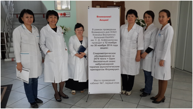 С 12  по 30 ноября 2014г. кафедра внутренних болезней № 2 провела акцию в рамках Всемирного дня ХОБЛ в  Клинике Внутренних болезней. Для этого нами был подготовлен стенд для ознакомления пациентов, приходящих в клинику и оповещены городские поликлиники.