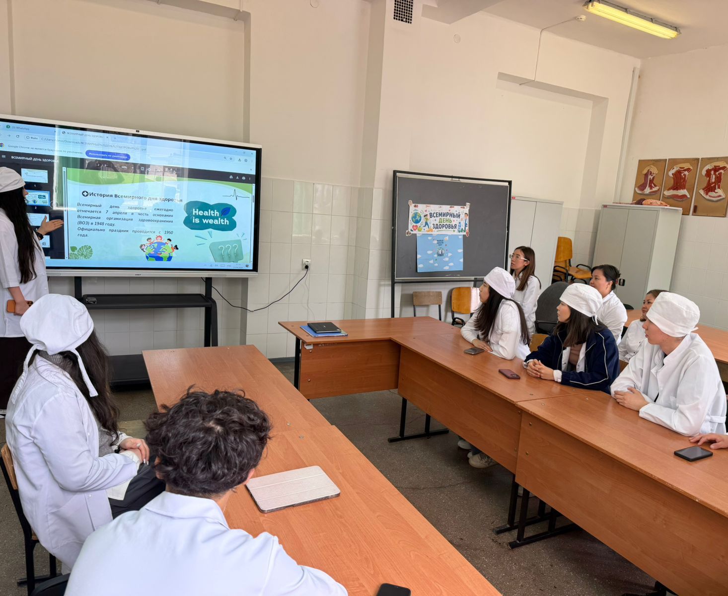 23 апреля 2026 года в рамках воспитательной работы на кафедре нормальной анатомии им. С.Р. Карынбаева Казахского национального медицинского университета имени С.Д. Асфендиярова во 226 аудитории состоялось мероприятие “Всемирный день здоровья”, организованное ассистентом Сүлейменовой А.Ж. и студентами факультета “Стоматология” 25-021р группы.