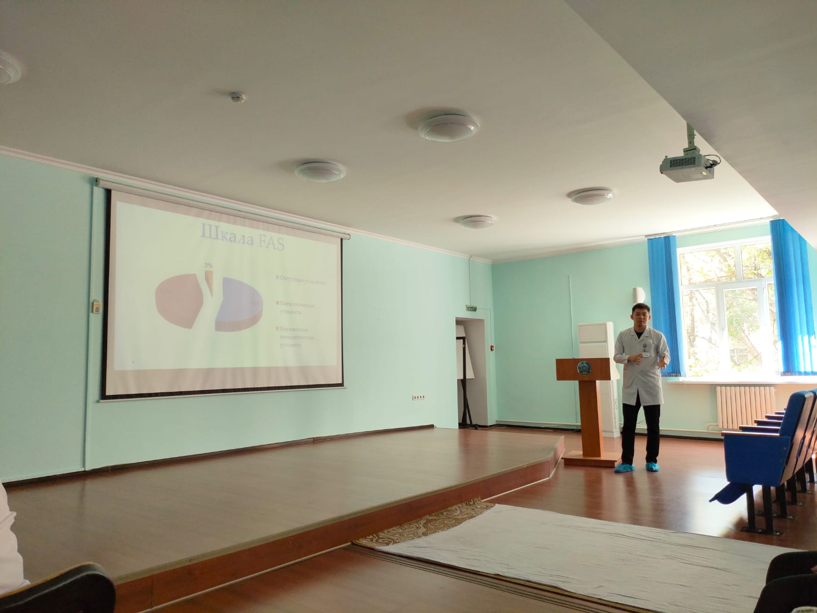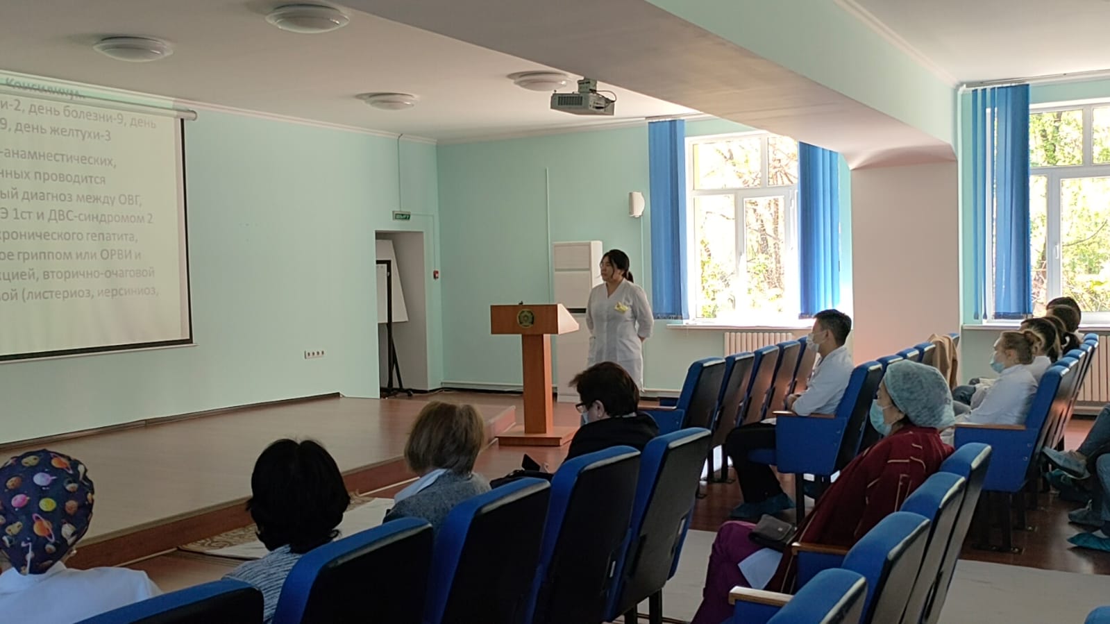 Выступили с докладами и результатами научно-исследовательских работ интерн 2-го курса Югай С. по направлению ВОП и резидент 1-го курса обучения по специальности инфекционные и тропические болезни, взрослые и детские Ботаспаева А.