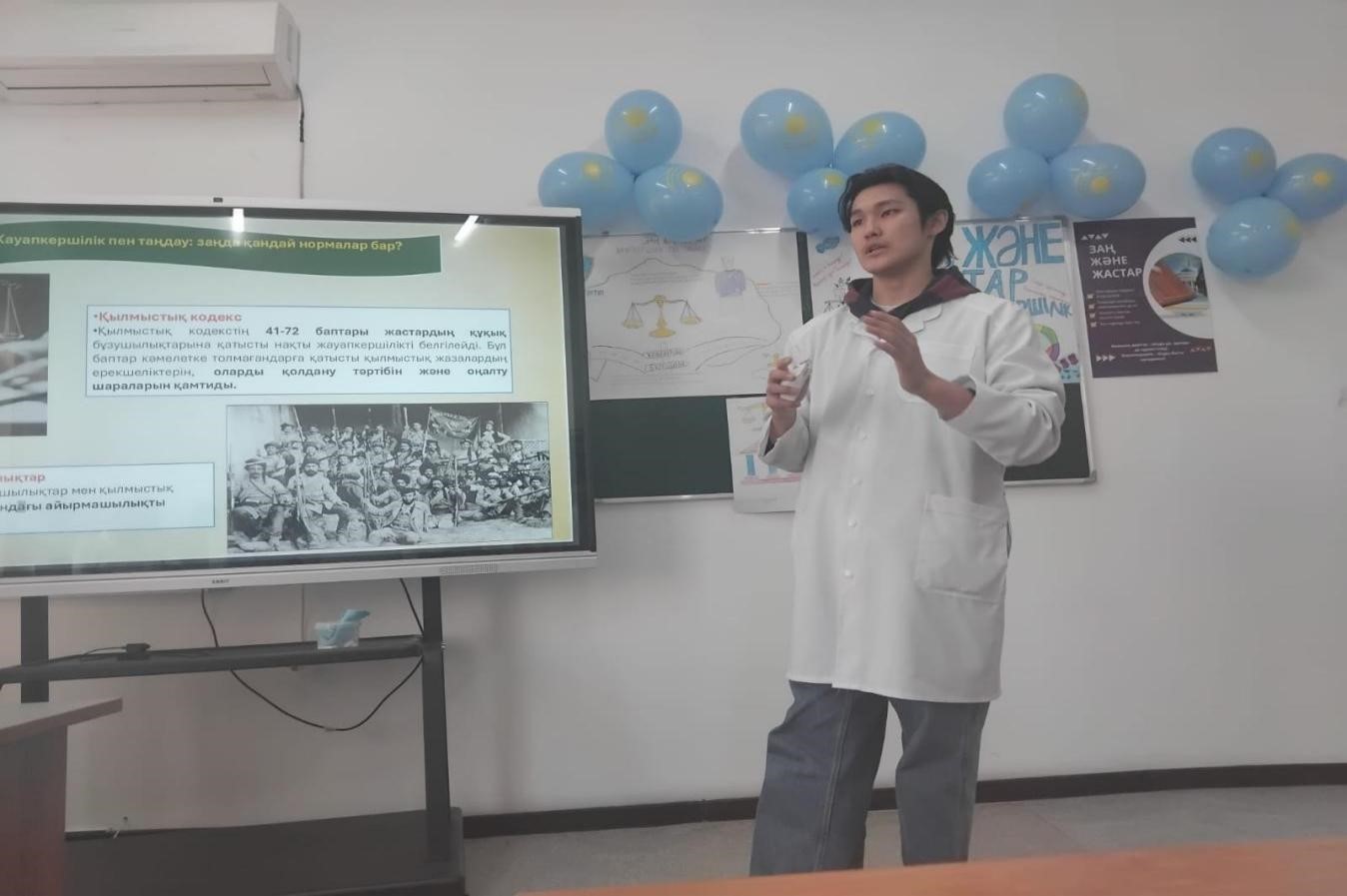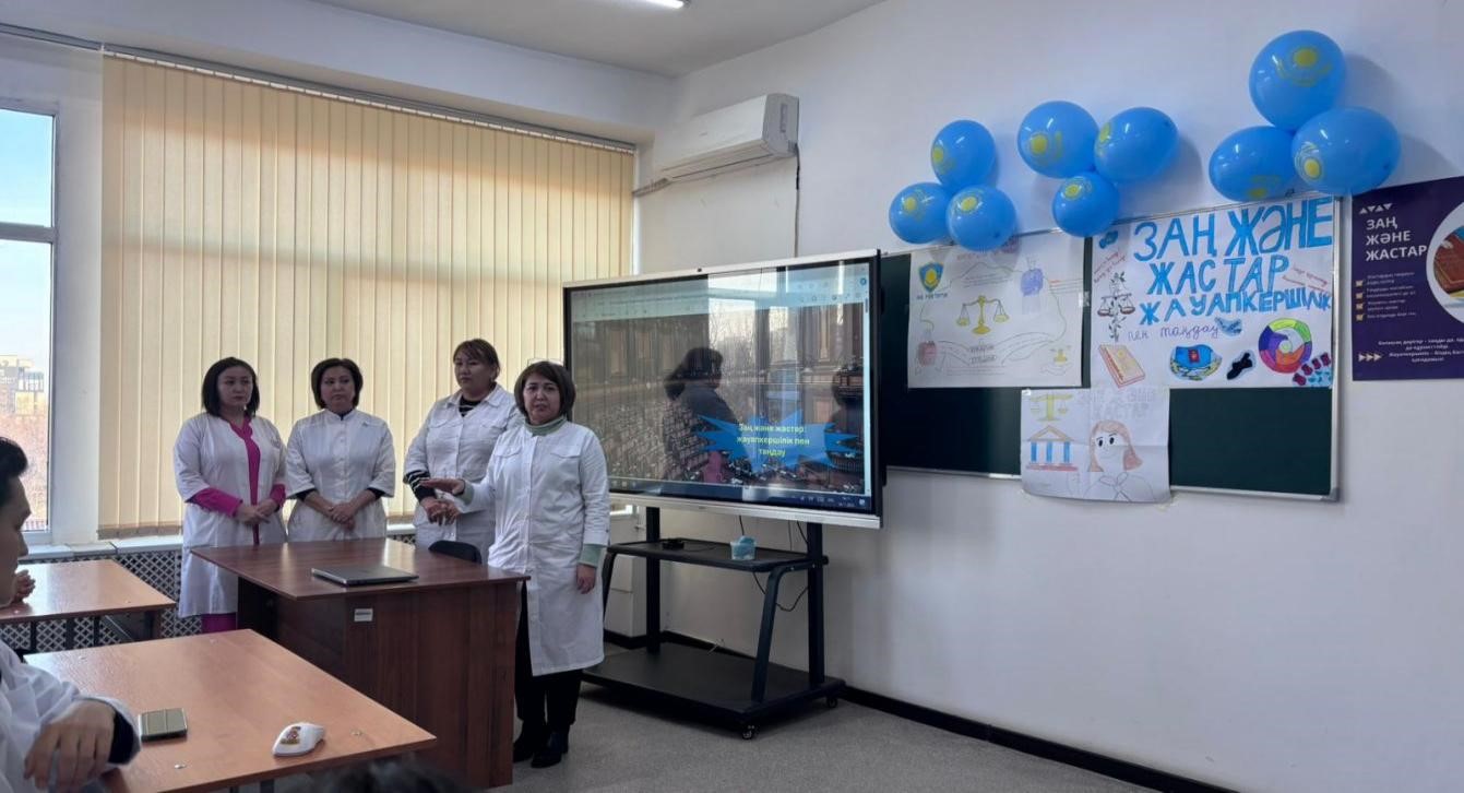 14 ноября 2025 года кураторами кафедры «Молекулярная биология и медицинская генетика» Шайхымбековой Р.М. и Нуржановой К.С. была проведена лекция-дискуссия на тему «Закон и молодежь: ответственность и выбор» среди кураторских групп М25-011к, М25-012к, М25-013к и М25-014к. Основной целью мероприятия было повышение правовой грамотности студентов, формирование гражданской ответственности и глубокого понимания сущности и значения Конституции Республики Казахстан. В ходе мероприятия студентам была предоставлена развернутая информация о верховенстве закона, правах и обязанностях молодежи, а также о роли правовой культуры в обществе. Студенты проявили активность и выразили собственные мнения по обсуждаемым вопросам. На мероприятии были представлены специально подготовленные плакаты и презентации, которые были защищены студентами. Каждая группа представила свою творческую работу, провела содержательный анализ и обсуждение вопросов правовой ответственности. Итоги мероприятия подвели заведующая кафедрой Молдакарызова А.Ж. и старший куратор Танеева Г.Т., высоко оценив работу организаторов и активность студентов.