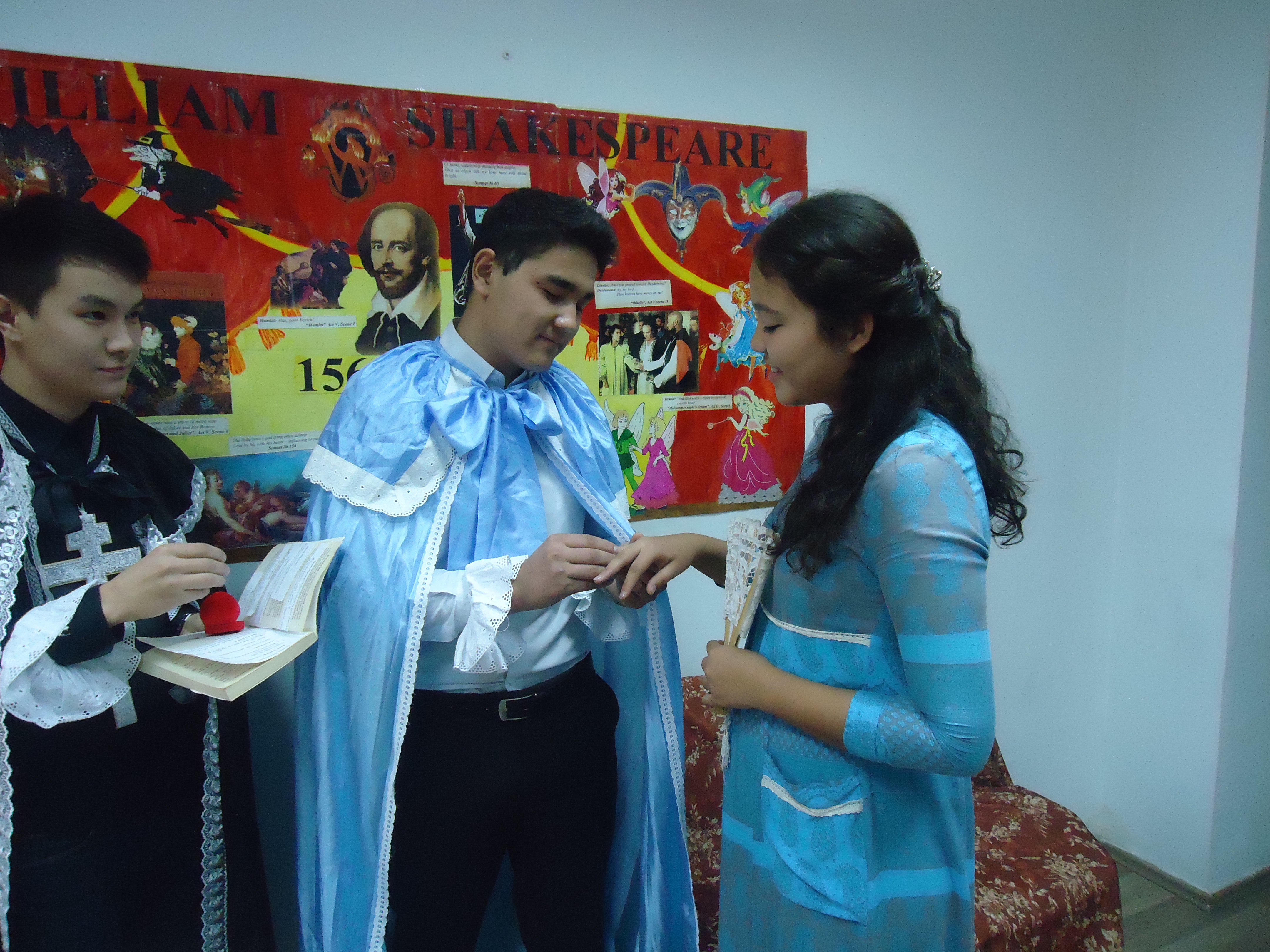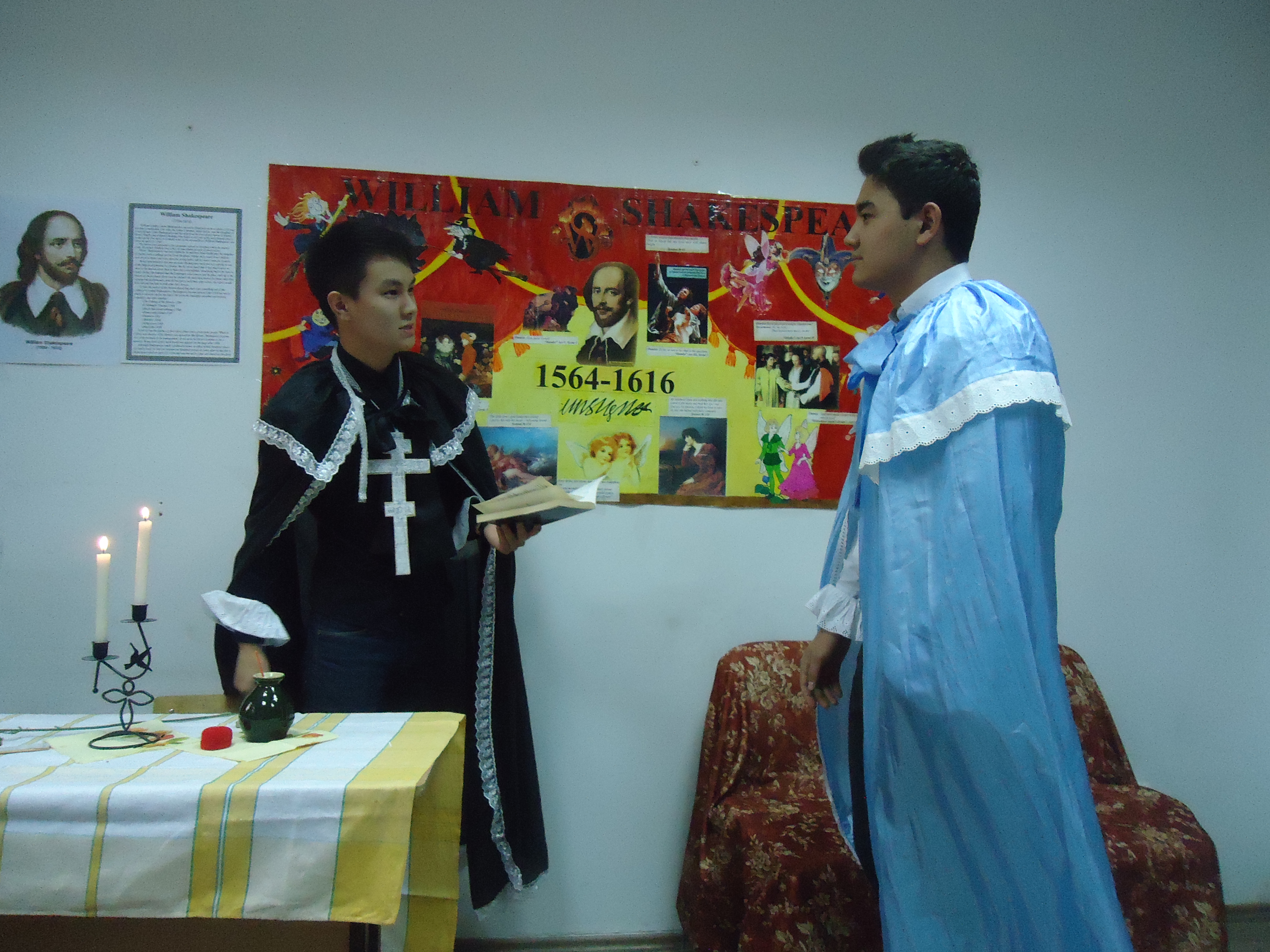 Во время литературного вечера студенты показали основные «классические» сцены из самых известных трагедий и комедий В. Шекспира: «Макбет», «Ромео и Джульетта», «Сон в летнюю ночь», а также прочитали Сонеты № 130, 154.