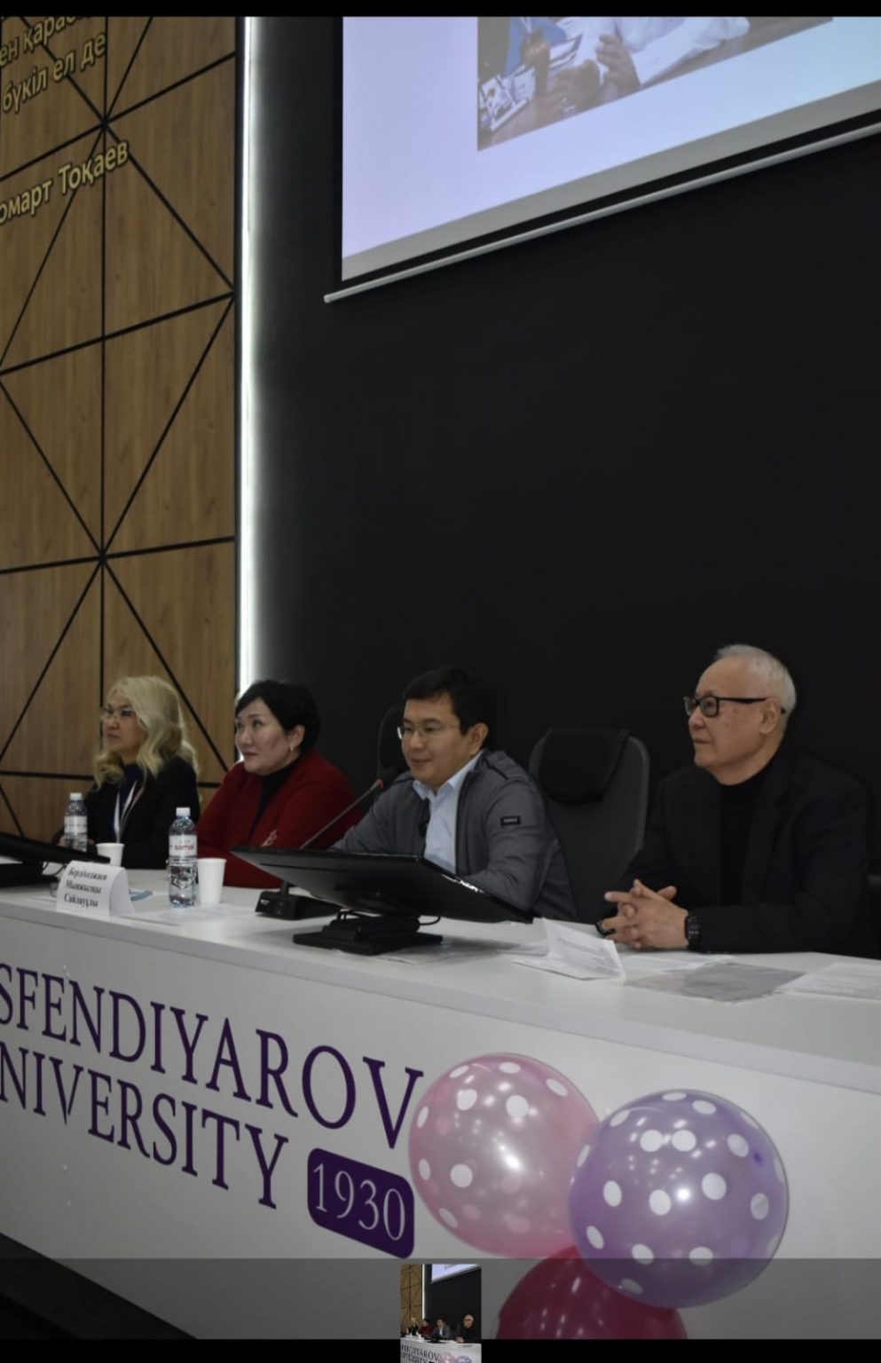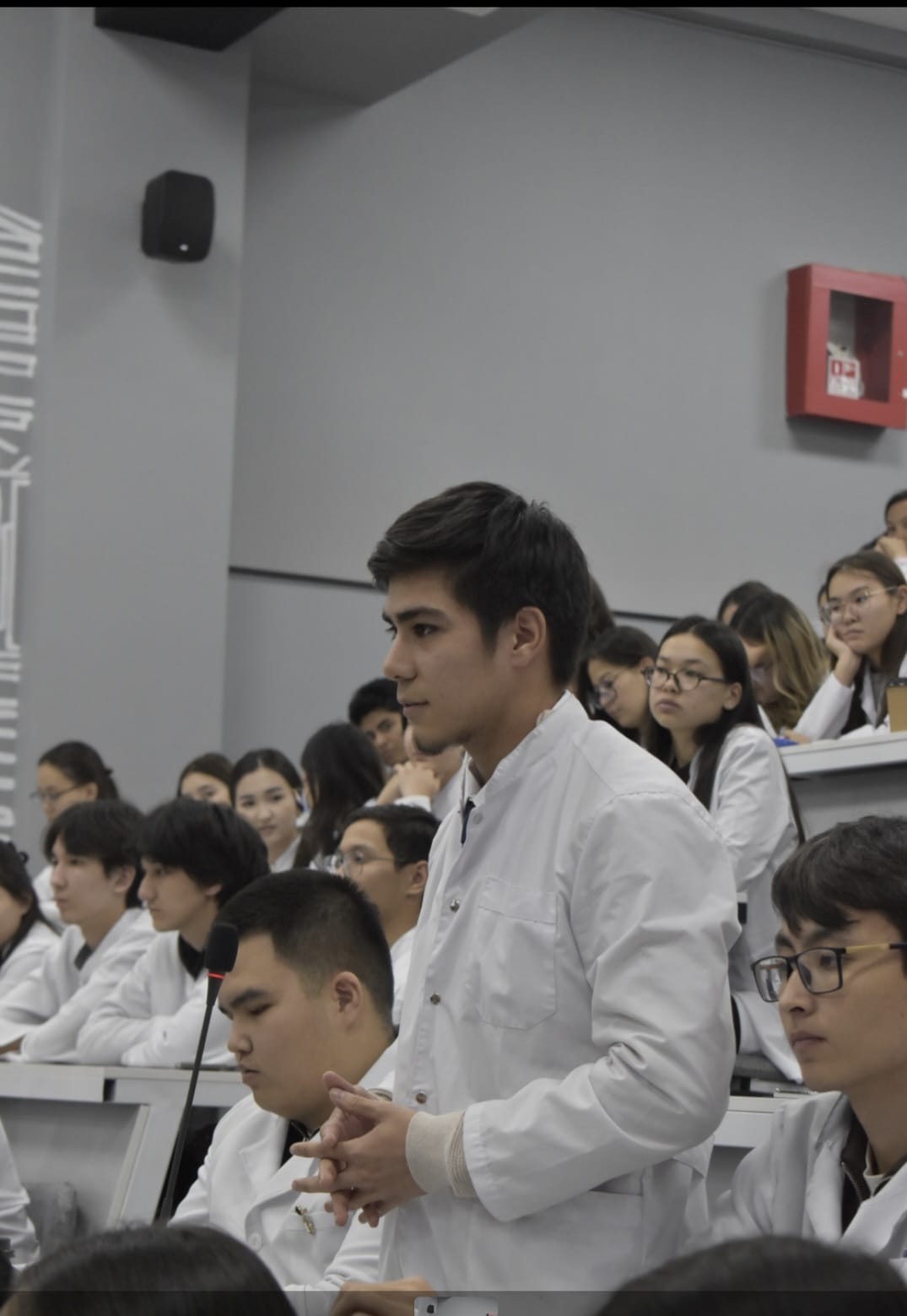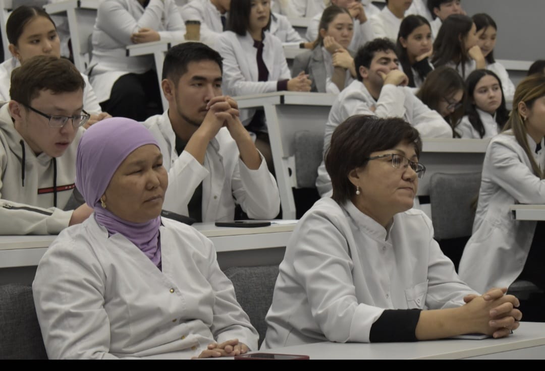 7 октября 2025 года в 7-й аудитории учебного корпуса №7 по инициативе кафедры нормальной анатомии имени С.Р. Карынбаева, в частности, заведующей кафедрой Ахмад Н.С., Досаева Т.М., Кенбаевой С.Р., Абиыровой Н.Б., Искаковой Л.А., Искиндировой А.М., Охановой М.И., Уважановой А.С., Абиловой А.А., Куатбековой А.К., в соответствии с утвержденным планом воспитательной работы была организована мотивационная встреча с известным нейрохирургом, магистром общественного здравоохранения, вице-президентом Национальной медицинской ассоциации Бердиходжаевым Мынжылкы Сайлаулы. Формат встречи был представлен в виде подкаста. Главная цель мероприятия- познакомить студентов с личностью, добившейся успеха в области медицины и проложить путь к становлению личности из числа сильных профессионалов.