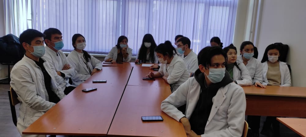 С приветственным словом выступили заведущая кафедры Сатбаева Э.М. доцент кафедры к.м.н Есетова К.У. и ответственный по воспитательной работе Малкова Т.В.