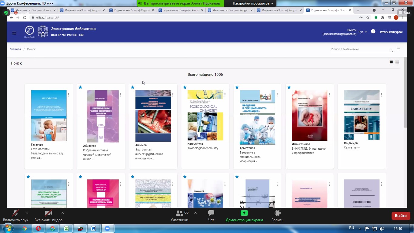 С 13 по 17 сентября 2021 года Научная  библиотека   КазНМУ  им. С.Д. Асфендиярова  совместно со Школой  «Общая медицина-1»  провела онлайн  вебинары на  тему: «Электронные образовательные ресурсы» издательства Эпиграф  для студентов 1 курса по специальности   6В10107 – «Общая медицина», на которых были продемонстрированы платформы мультимедийных учебников и База анимаций.