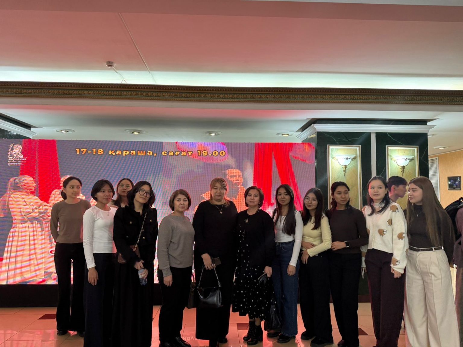 Кураторы кафедры молекулярной биологии и медицинской генетики: 17 ноября 2025 года Г.Т. Танеева, К.Е. Жузжан и Р.М. Шайхымбекова вместе со студентами 1 курса специальности «Медицина» групп М25-001/002, М25-003/004 и М25-013/014 посетили Государственный академический Казахский театр для детей и юношества имени Габита Мусрепова, где посмотрели спектакль по произведению Міржакыпа Дулатулы «Бақытсыз Жамал» в исполнении актеров Жамбылского областного казахского драматического театра имени А. Токпанова, специально приехавших из Тараза.
