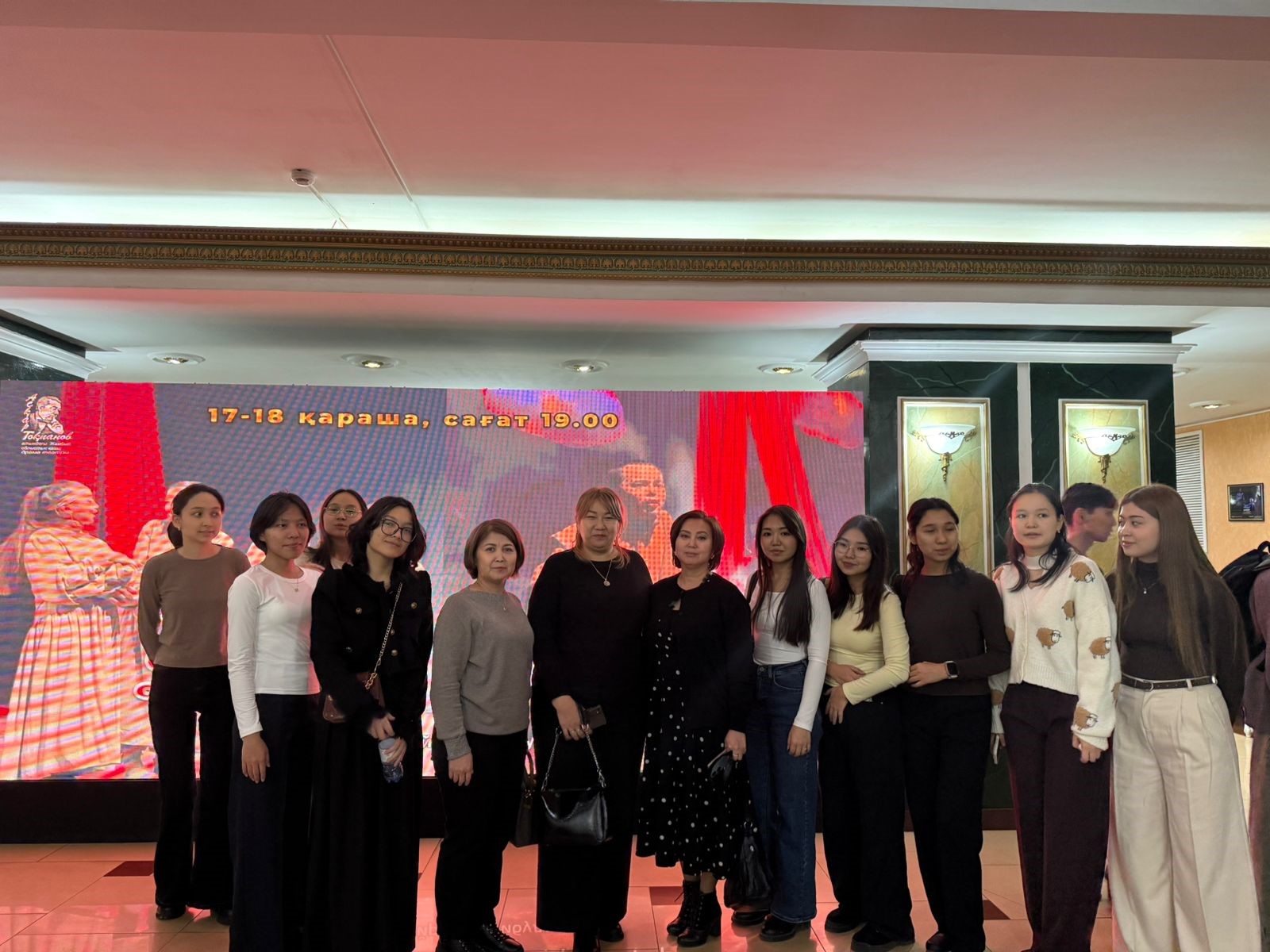 Кураторы кафедры молекулярной биологии и медицинской генетики: 17 ноября 2025 года Г.Т. Танеева, К.Е. Жузжан и Р.М. Шайхымбекова вместе со студентами 1 курса специальности «Медицина» групп М25-001/002, М25-003/004 и М25-013/014 посетили Государственный академический Казахский театр для детей и юношества имени Габита Мусрепова, где посмотрели спектакль по произведению Міржакыпа Дулатулы «Бақытсыз Жамал» в исполнении актеров Жамбылского областного казахского драматического театра имени А. Токпанова, специально приехавших из Тараза.