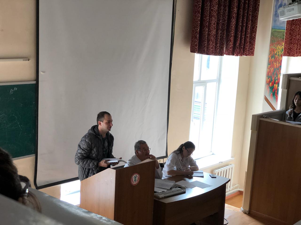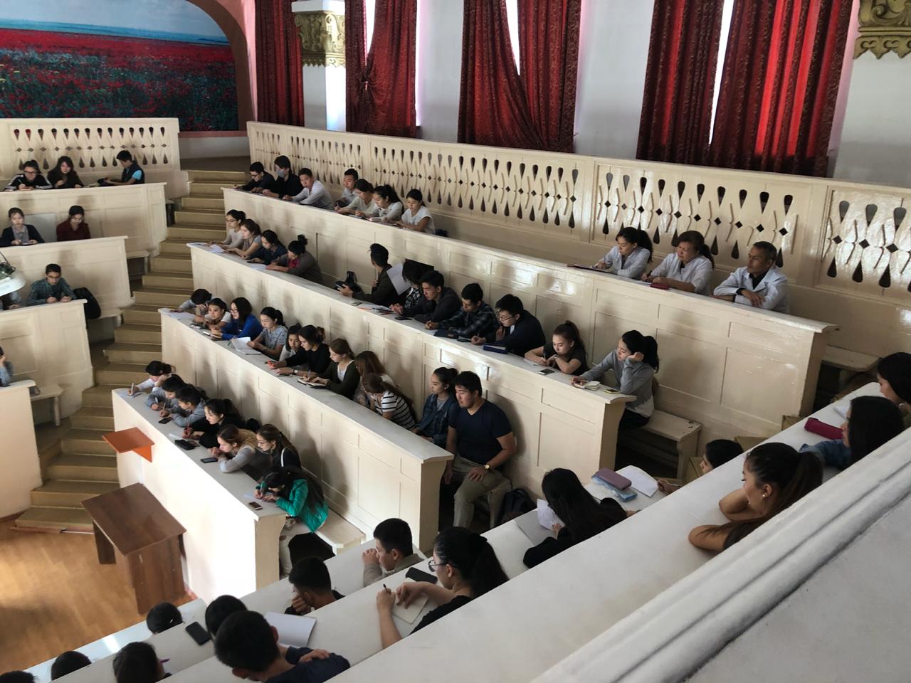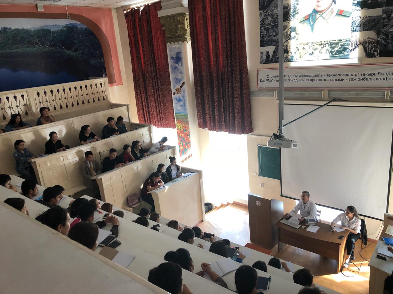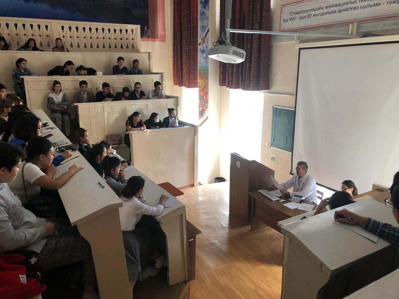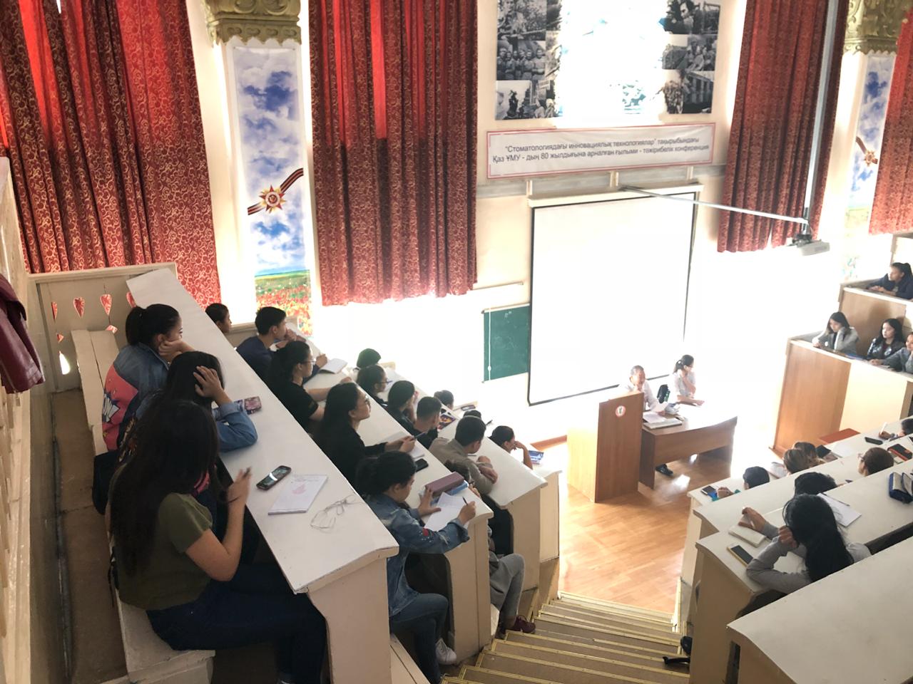 22 сентября 2018 года на кафедре нормальной анатомии ( зав. доцент Ахмад Н.С). прошло первое заседание НСК «Анатом». Руководитель НИРС кафедры : профессор Жаныбеков Д.Е. Присутствовали более 90 студентов младших курсов, преимущественно студенты ОМФ, а также молодые ученые кафедры. На заседаний НСК были заслушаны следующие вопросы: 1-организационный вопрос. 2- утверждение плана НИРС на учебный год. 3-разное. По первому вопросу: председателем НСК «Анатом» выбран студентка 3-го курса ОМФ Қайшыбай Ақеркем. Секретарем студентка 2-го курса ОМФ Бақытова Алия. По второму вопросу: заслушан и утвержден план НИРС и молодых ученых на 2018-2019 уч.гг. По третьму вопросу: студентам представлены темы научно-исследовательских работ. К информации прилагаются фотодокументы.