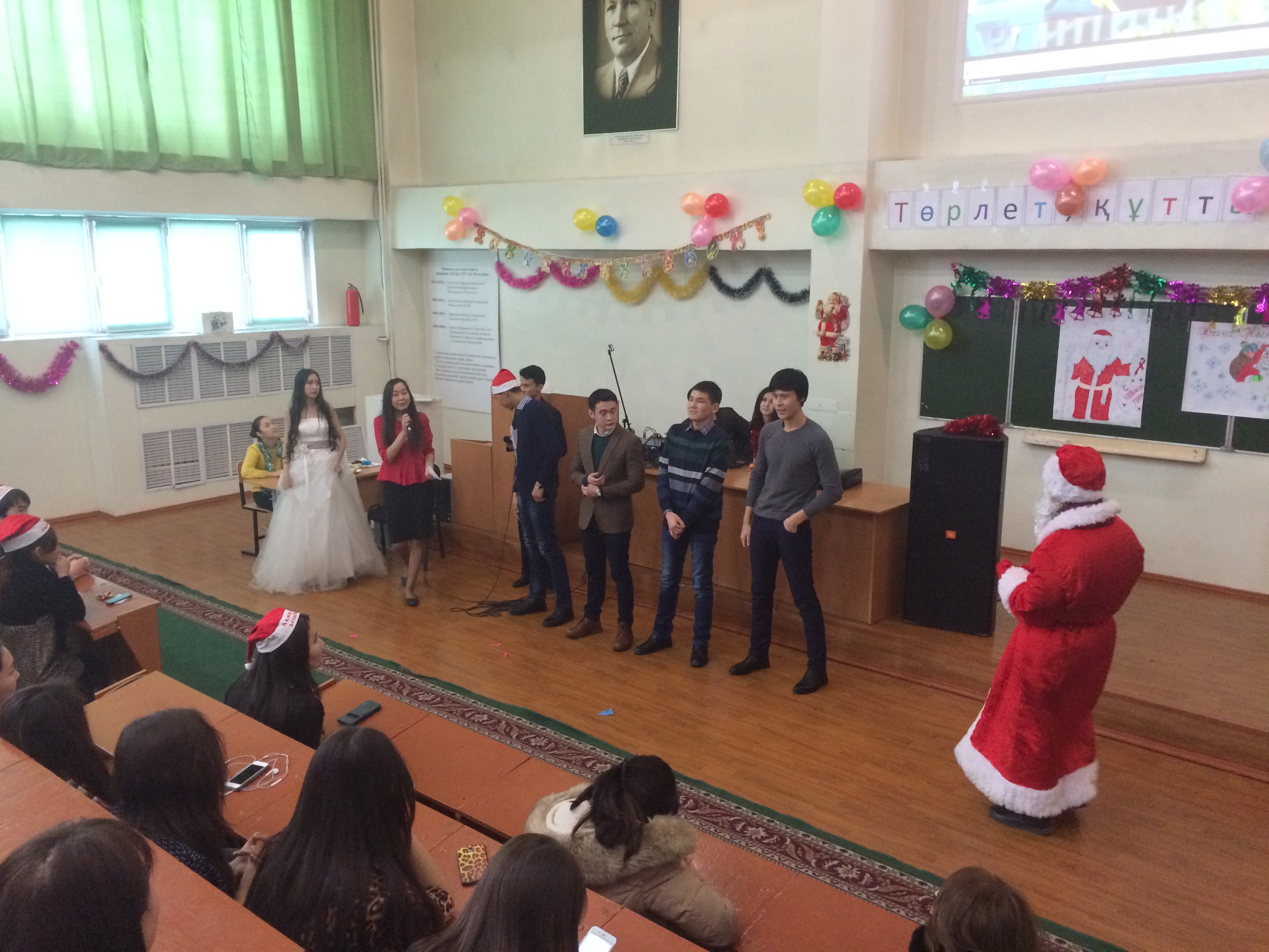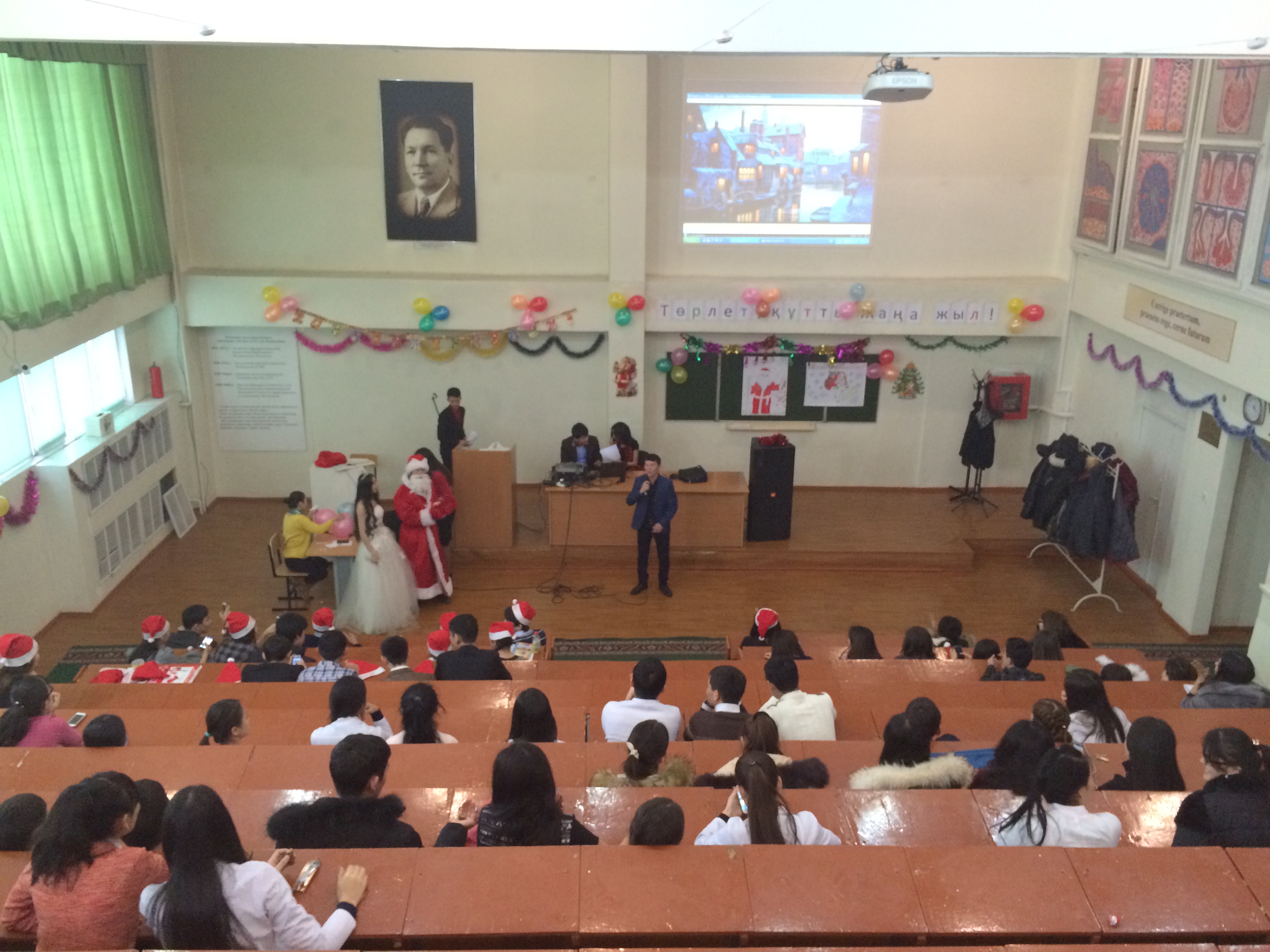 Жаңа жыл-қашанда әр адамның жүрегіне жаңа үміттер мен аппақ армандар ұялататын, ғажайып қиялдарға қол создыратын ең сүйікті мерекеміз. Осы мерекеге орай «Қалыпты физиология» кафедрасы және Жалпы медицина факультетінің 1 курс (009, 010, 012 топтары) студенттерінің ұйымдастыруымен «Төрлет, құтты Жаңа жыл!» атты мерекелік кеш өтті. Кешке кафедраның оқытушылары мен студенттер қатысты. Кешті өзінің құттықтау сөзімен қалыпты физиология кафедрасының оқытушысы, аға тьютор Джусипбекова Балжан Абдрамбековна ашты. Мерекелік кешіміз қыздар мен жігіттерден құралған «Сағындым Алматымды » атты әнге ырғақты бимен басталды. Жаңа жылдық кешіміздің сәнін кіргізген кейіпкерлеріміз Аяз ата ролінде Оралбаев Абзал мен Ақшақар ролінде Тас Мадина ойнады. Әсем әндер шырқалды: Атажанова Зульфия, Маралбай Даурен, Бабахан Сержан және би биленді. Қонақтарымыздың көңілін көтеру үшін қызықты ойындар ойнатылды, ойынға студенттер мен оқытушылар қатысты. Барша өнерпаздарымыз бен ойынға қатысушыларға Аяз ата сыйлықтарын таратты. Кеш соңында оқытушы Кожаниязова Ардак Нургалиевна жиналған қауымды жаңа жыл мерекесімен құттықтап, қортынды сөз сөйледі. Кеші көңілді, әрі әсерлі өтті.