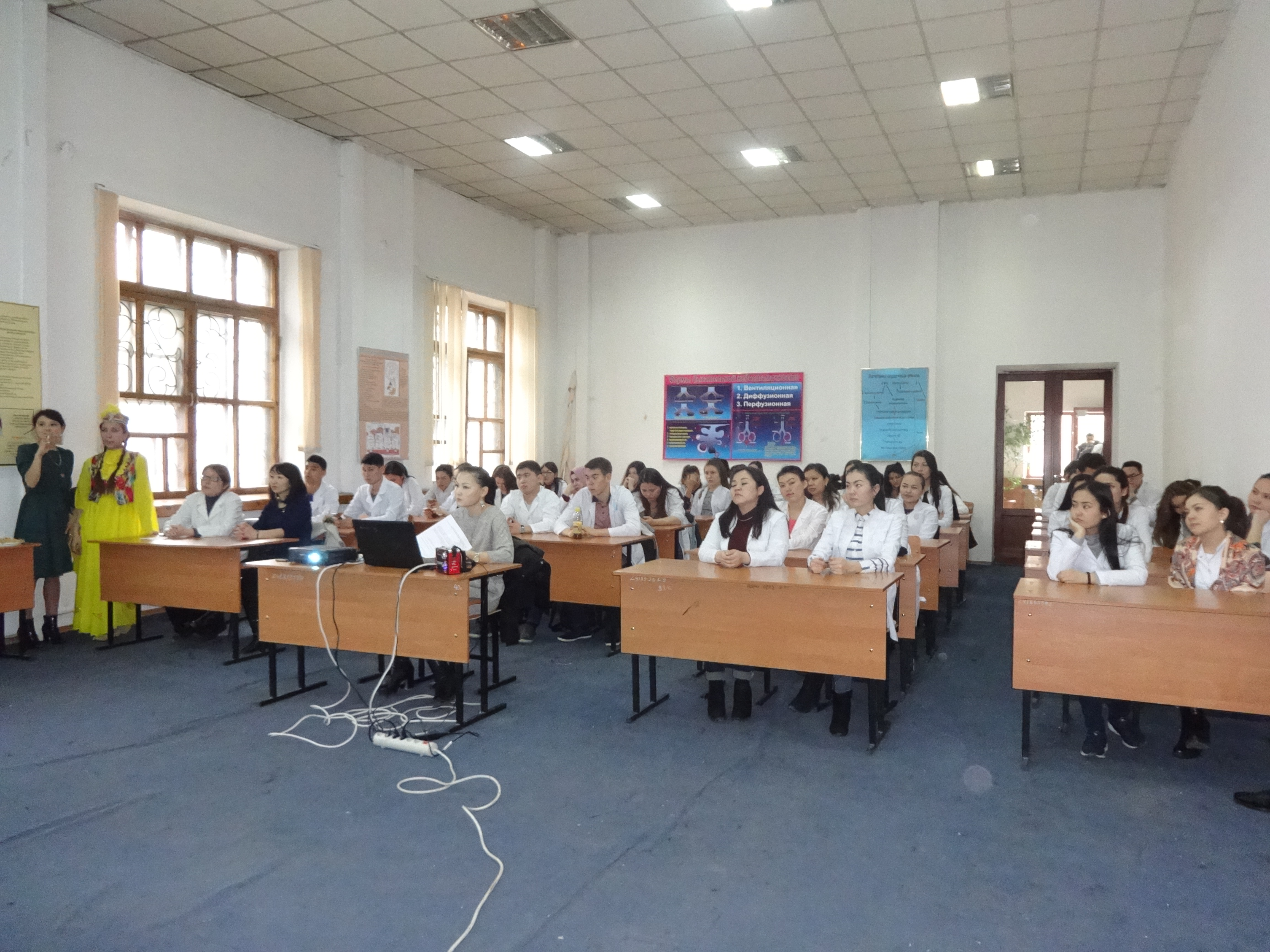 Студентами 14-019-02 группы III курса факультета «Общая медицина» под руководством ППС кафедры нормальной физиологии с курсом валеологии совместно с ППС кафедры фармакологии было организовано и проведено мероприятие, посвященное празднику 1 мая «Ынтымақ, бірлік, келісім – ел үшін ең басты байлық» (04 апреля 2017 г.) в аудитории №18 с приглашением проректора по воспитательной работе Р.Т.Джумашевой, начальника управления по воспитательной и социальной работе М.Т.Султановой, декана факультета «Общая медицина» Г.А.Шопаевой, заместителя декана 4 курса Ж.Ж.Курмангалиевой, заместителей декана 3 курса С.Х.Наккажиной и Г.Н.Бейсегуловой. Ответственные за мероприятие и студенты 14-019-02 группы III курса факультета «Общая медицина» обратили внимание студентов на формирование дружеских отношений между студентами; воспитывать у студентов уважение к культурам, историческому прошлому и наследию народов, проживающих в Казахстане; формирование у студентов казахстанского патриотизма посредством культурного наследия народов Казахстана, что и явилось целью проведенного вечера.