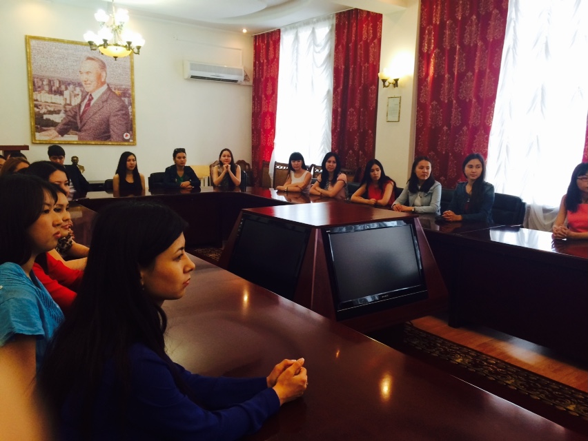 Бугін, яғни 15.06.15 жылы университеттің кіші конференция залында оқу-тәрбие жұмысы бойынша проректоры Төлебаев Қазыбек Ағабылұлы және жалпы медицина факультетінің деканы Джумашева Рахима Тәжібайқызының қатысуымен ҚММУ, АМУ, М.Оспанов атындағы БҚММУ академиялық ұтқырлық бағдарламасы бойынша келген жалпы медицина факультетінің 4 курс студенттерімен кездесу өтті.