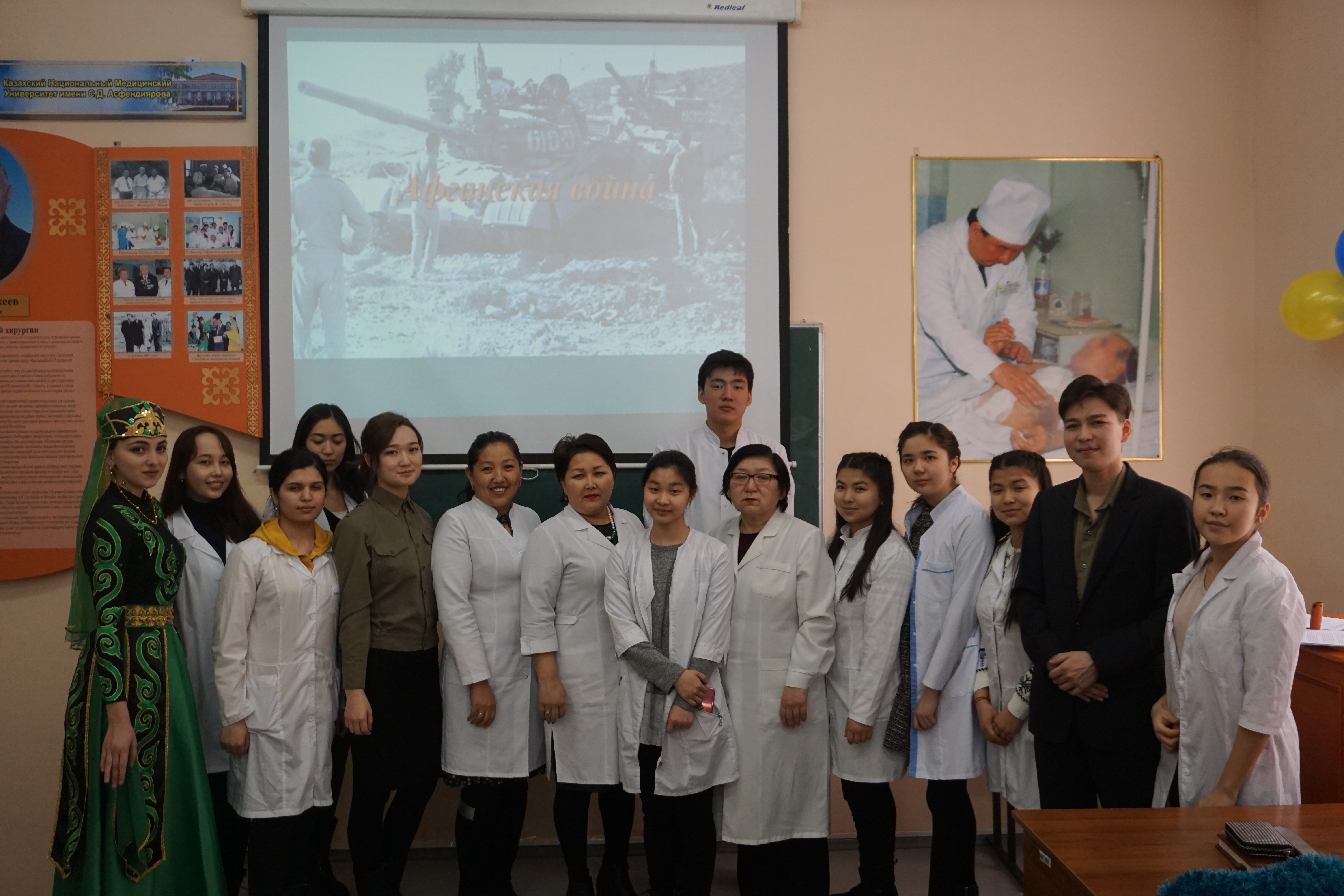 14 февраля 2019 года в АО «Национальном медицинском университете» с тьюторскими группами (ОМ18-027,028,029, 007, 010) с участием преподавателей-кураторов кафедры гистологии Омаровой Р.С., Мырзахановой И.А., Кругликовской Т.Ф., Джангельдиной З.Н., Алсейтовой Ф.Ж. прошла тематическая встреча, посвященная Дню вывода Советских войск из Афганистана.