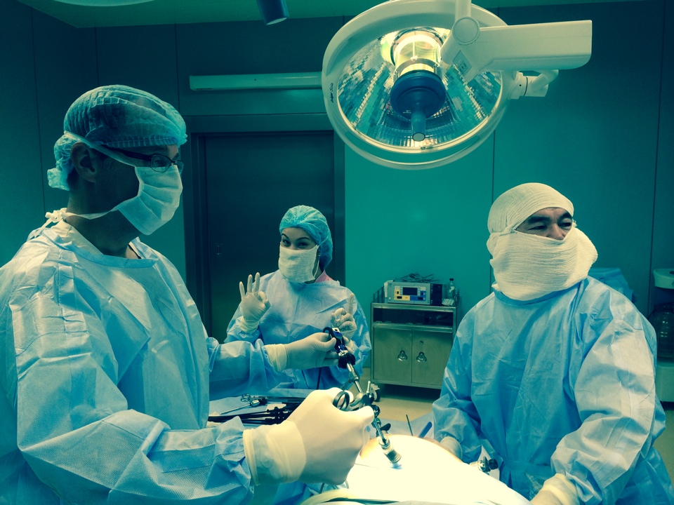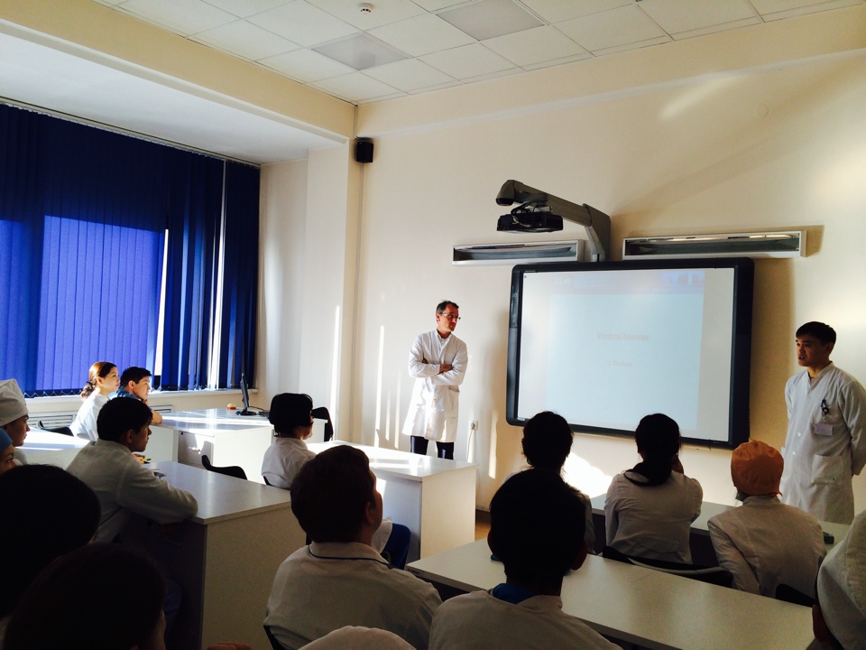 В рамках привлечения ведущих зарубежных специалистов в качестве Визитинг-Профессоров с 28.11.2014 по 12.12.2014г. на кафедре «Хирургические болезни №1» Казахского Национального Медицинского университета им. С.Д. Асфендиярова провел обучающий семинар на тему «Мини-инвазивные и инновационные технологии в хирургической практике» доктор PhD, профессор Мюнхенского технического университета, (Германия, TOP100 по QS) Jorg Theisen.