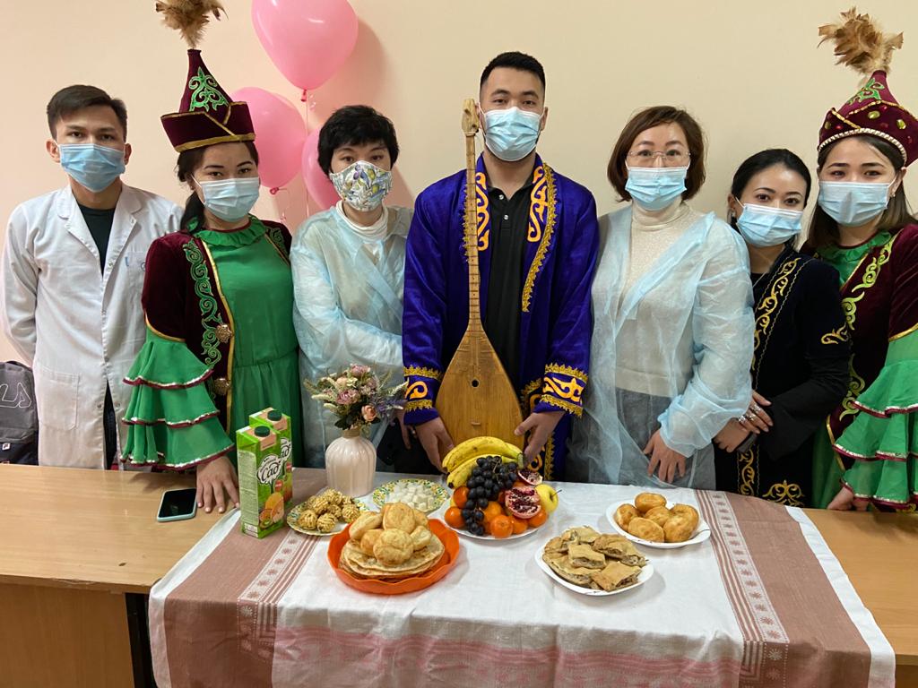 On March 25, 2021, within the framework of the nationwide project “Marathon of Good Deeds”, timed to coincide with the celebration of the 30th anniversary of the Independence of the Republic of Kazakhstan, employees of the Kazakh National University named after S.D. Asfendiyarov Department of General Medical Practice No. 2 Professor Maksutova D.Zh., Zhukembaeva A.M. ., together with interns on the basis of the CGP on the REM, polyclinic No. 5 held “Nauryz” together with ethno-cultural associations.
