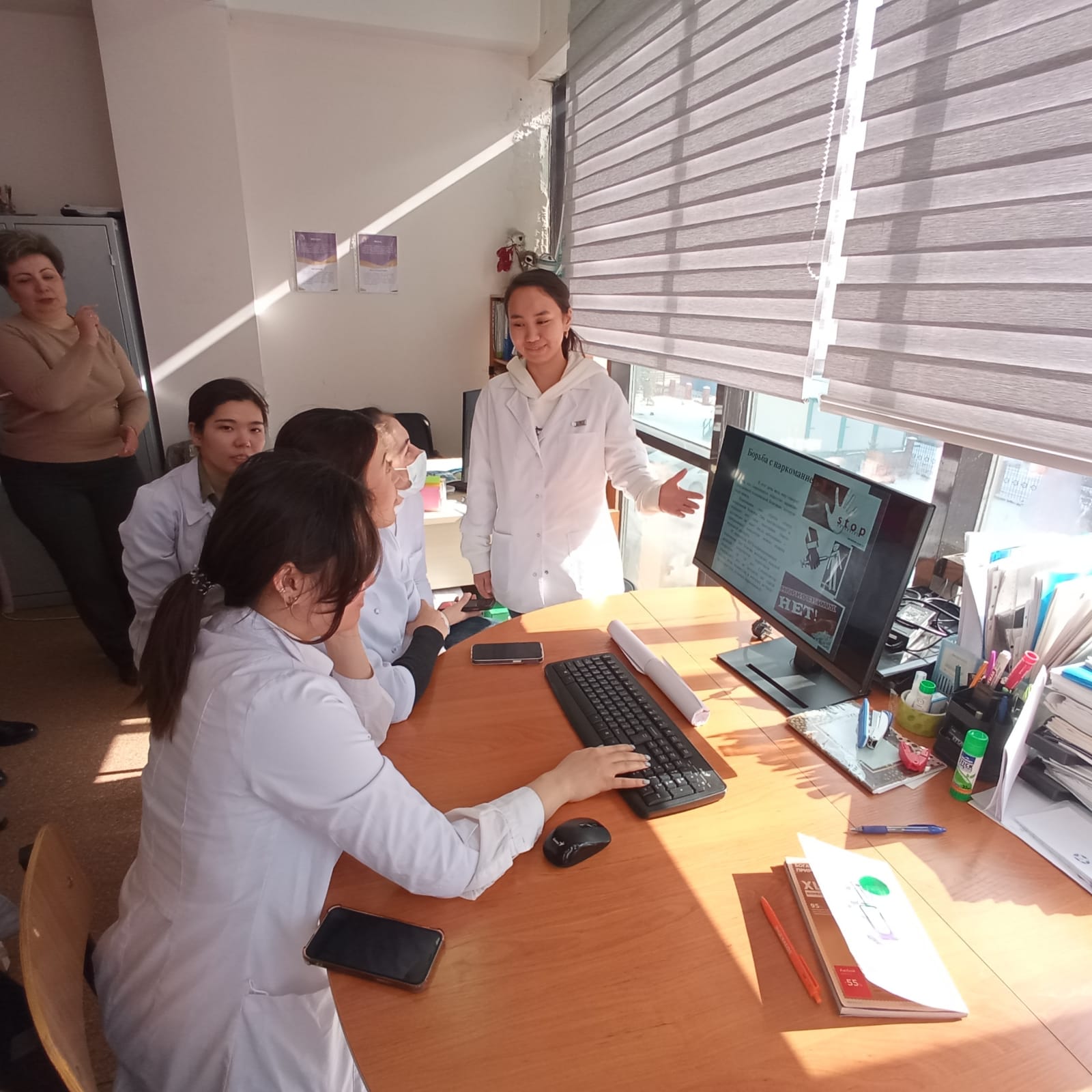 On March 29, 2021, within the framework of the nationwide project “Marathon of Good Deeds”, timed to coincide with the celebration of the 30th anniversary of the Independence of the Republic of Kazakhstan, employees of the Kazakh National University named after S.D. Asfendiyarov Department of General Medical Practice No. 2 Associate Professor Amankulova Zh.S., assistant Kosherbayeva E. Sh., assistant Arinova A.N., assistant Shopabaev N.B. with students of the 5th year held online lectures, student debates on the topic: “Global initiatives of Kazakhstan. Contribution to international security»