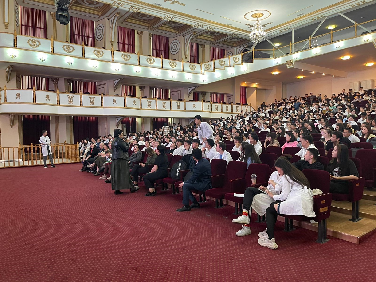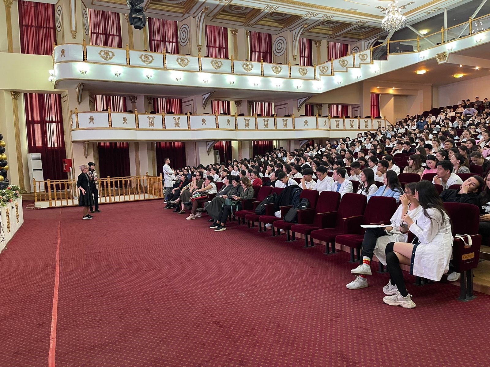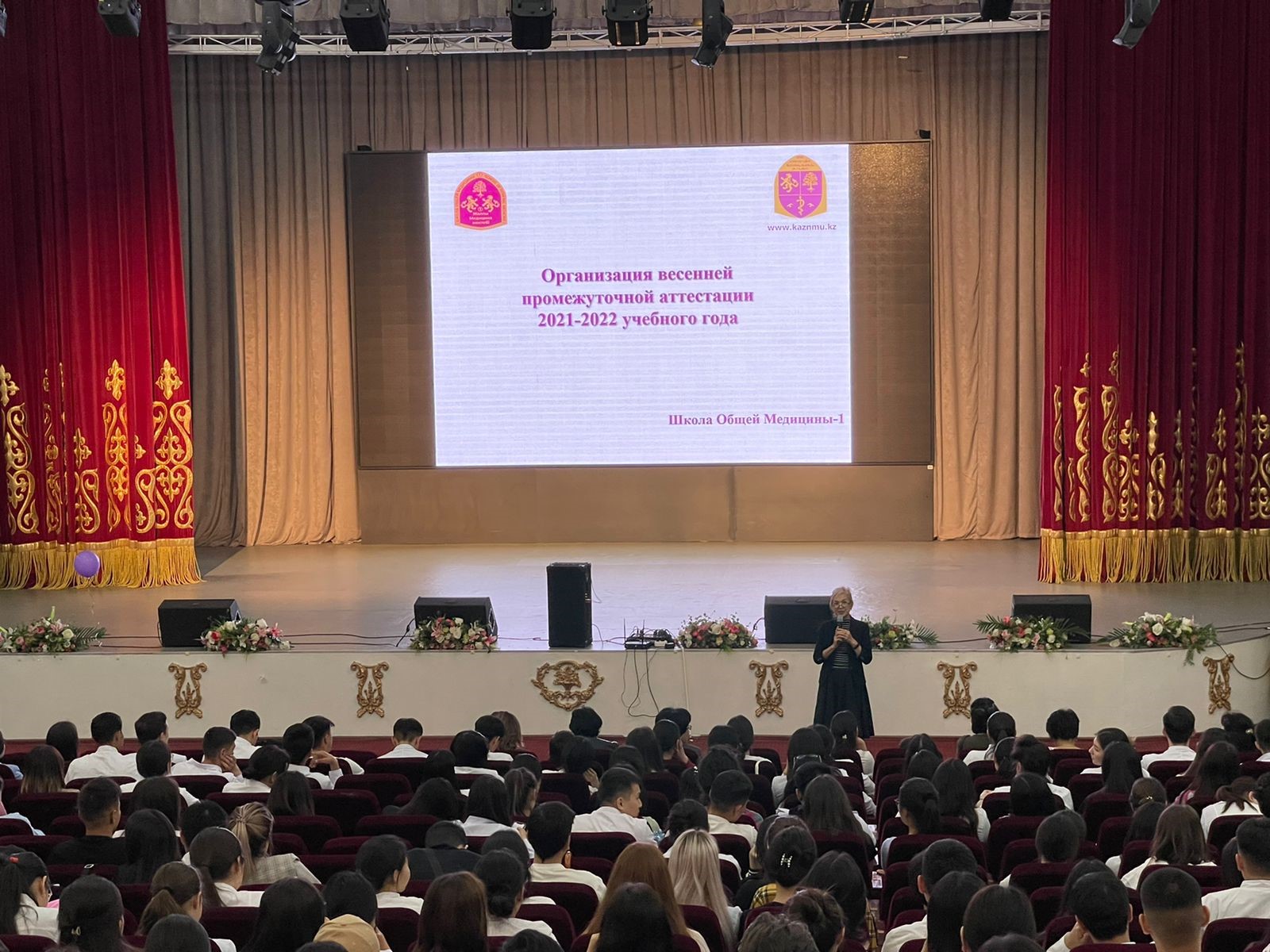 04.05.2022ж. күні Жалпы медицина-1 мектебінің деканы С.Х. Измайлова «Жалпы медицина» мамандығының 1 курс студенттерімен “Concordia” театрында, студенттердің аралық аттестацияға дайындығы туралы кездесуі өтті. Аталған кездесуге Анатомия кафедрасының меңгерушісі Ахмад Н.С., Гистология кафедрасының меңгерушісі Ергазина М.Ж., Ақпараттық -коммуникациялық технологиялар кафедрасының меңгерушісі Ажибекова Ж.Ж., Молекулалық биология және медициналық генетика кафедрасының меңгерушісі Молдакарызова А.Ж., Тілдер кафедрасының оқу ісінің меңгерушісі Тилембаева А.А., Химия кафедрасының оқу ісінің меңгерушісі Алмабаева А.А., және Тіркеуші кеңсе бөлімінің бастығы Набиева Г.С., Кітапхана жетекшісі Модовов Н.А. қатысты. Кездесуде оқу үрдісі, емтихан ережелері және академиялық адалдық туралы қайталанып айтылып өтті.