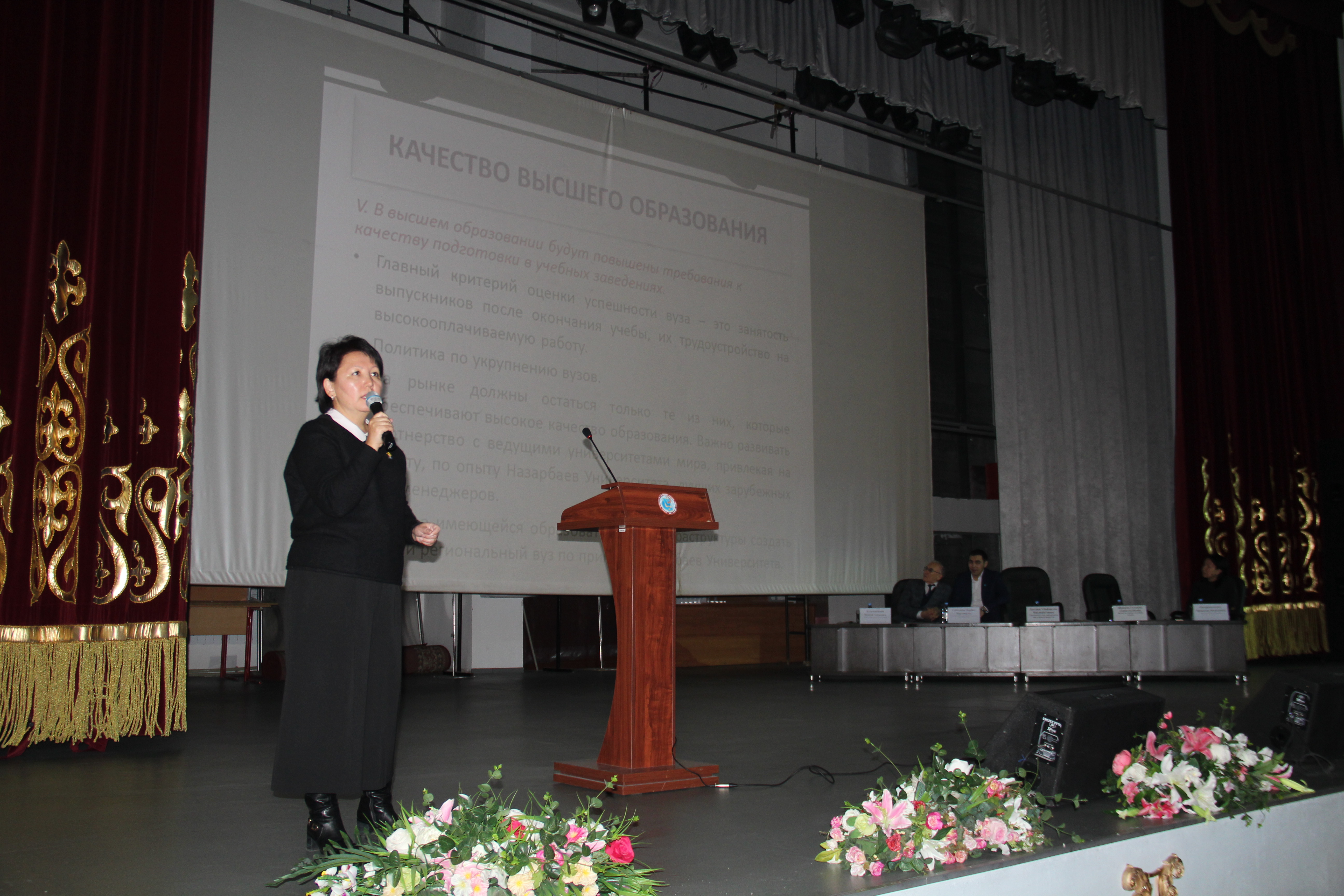 «Как будущему поколению страны, студентам Казахского Национального медицинского университета им.С.Д.Асфендиярова не безразлична судьба нашего государства!». Именно эти слова стали основным лейтмотивом выступления декана Школы общей медицины д.м.н, профессора Шопаевой Г.А. Ведь не случайно, в Послании Президента развитию сферы образования уделено большое внимание. Декан отметил, что не может не радовать современного преподавателя – принятие Закона «О статусе педагогов». Но закон, в то же время, предполагает саморазвитие преподавателя на постоянной основе. Данный проект будет способствовать повышению уровня качества образования.