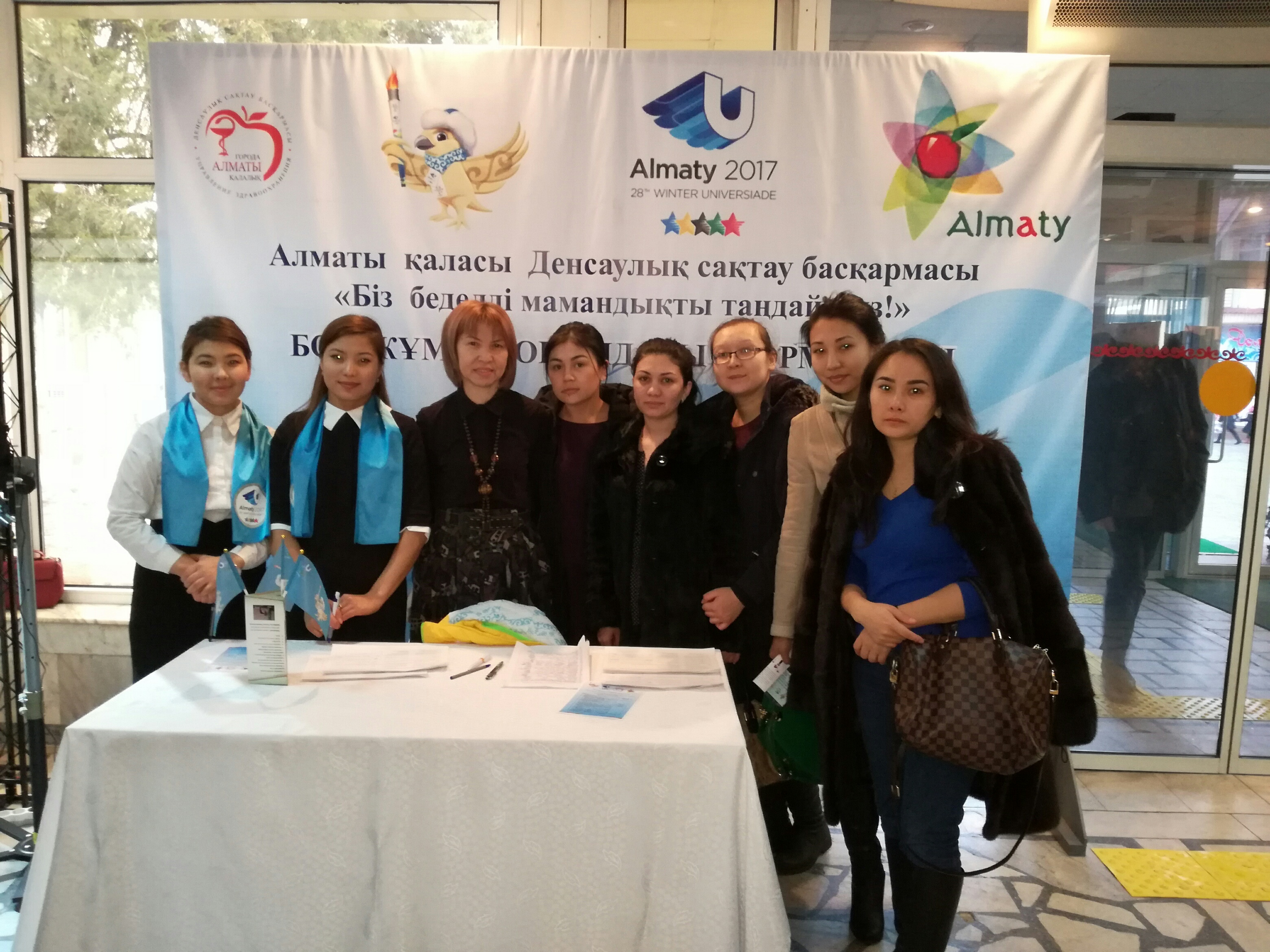 С целью привлечения врачей в практическую медицину 3 февраля 2017 года управлением здравоохранения города Алматы была проведена ярмарка вакансий медицинского профиля «Выбираем престижную профессию».