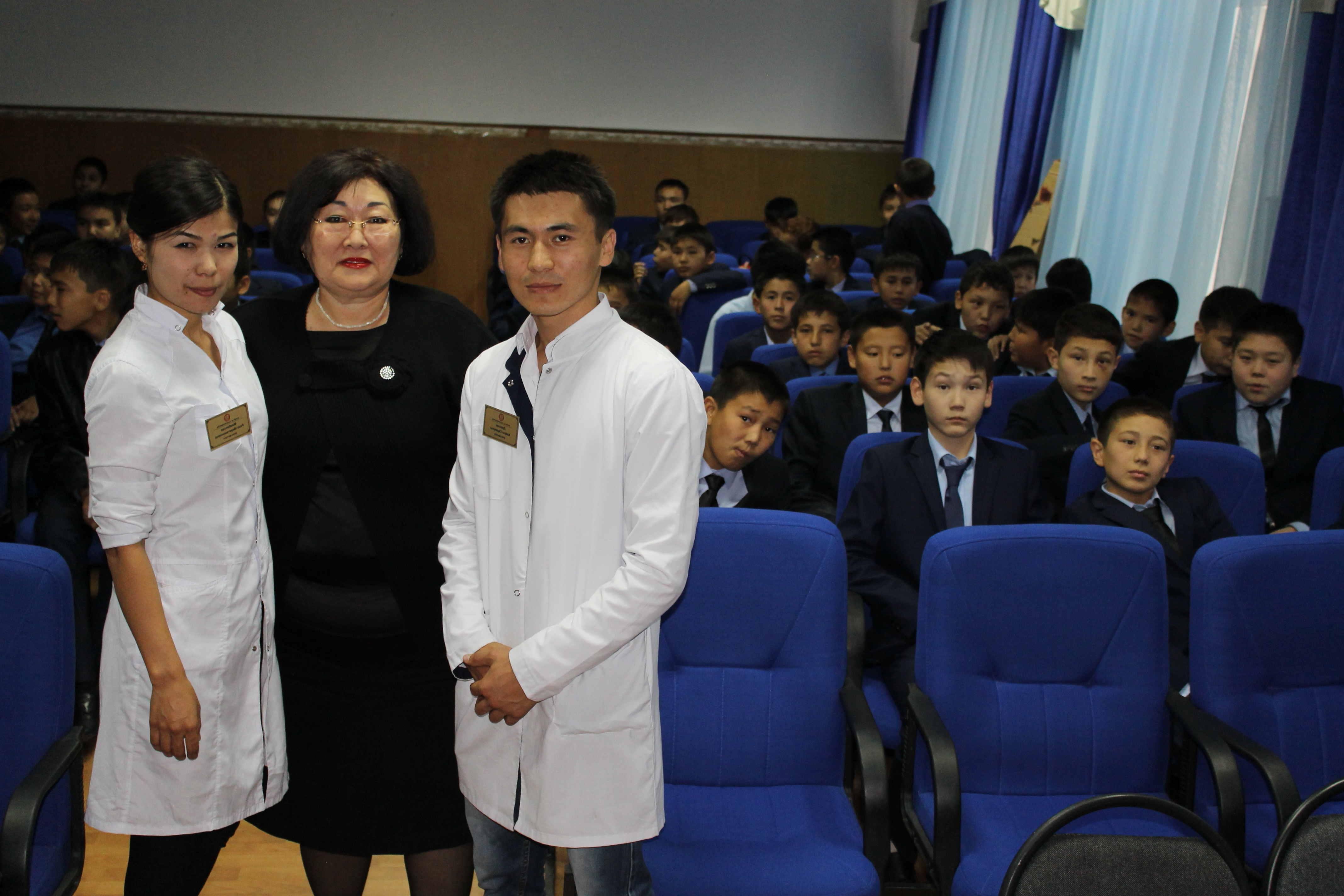 03/01/2016, the interns of 610 gr., Studying in the state language (the head of the Assoc. Prof. Ospanbekova N.К.) gave a lecture at the Almaty Industrial College on the topic: “Diagnosis, treatment and prevention of influenza and ARVI.”