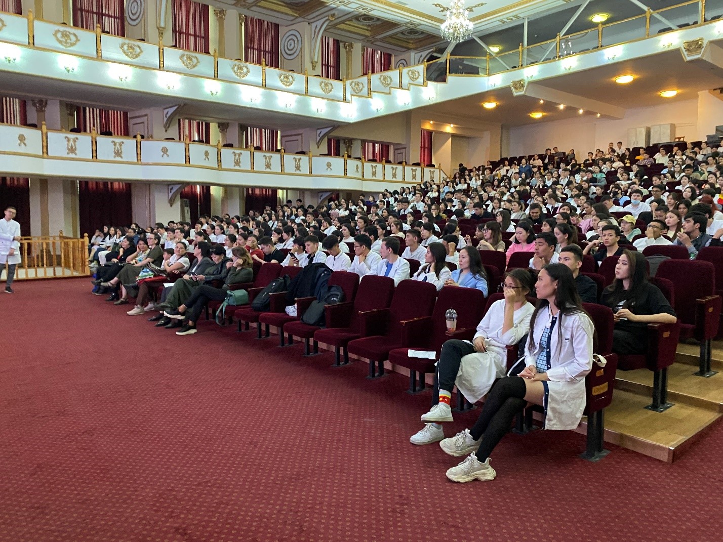 04.05.2022ж. күні Жалпы медицина-1 мектебінің деканы С.Х. Измайлова «Жалпы медицина» мамандығының 1 курс студенттерімен “Concordia” театрында, студенттердің аралық аттестацияға дайындығы туралы кездесуі өтті. Аталған кездесуге Анатомия кафедрасының меңгерушісі Ахмад Н.С., Гистология кафедрасының меңгерушісі Ергазина М.Ж., Ақпараттық -коммуникациялық технологиялар кафедрасының меңгерушісі Ажибекова Ж.Ж., Молекулалық биология және медициналық генетика кафедрасының меңгерушісі Молдакарызова А.Ж., Тілдер кафедрасының оқу ісінің меңгерушісі Тилембаева А.А., Химия кафедрасының оқу ісінің меңгерушісі Алмабаева А.А., және Тіркеуші кеңсе бөлімінің бастығы Набиева Г.С., Кітапхана жетекшісі Модовов Н.А. қатысты. Кездесуде оқу үрдісі, емтихан ережелері және академиялық адалдық туралы қайталанып айтылып өтті.