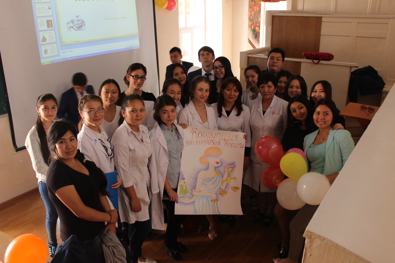 Особенно понравилась всем сценка  «Коррупция в медицине» с участием студентовҚұлдыбай Әсем, Нурсеит Нуркен, Чәкен Ержан, Оразғалиева Назерке, Әбдікерім Балтөре, Ескендір Дина. Завершилось мероприятие викториной «Эрудит.Коррупция». Участникам были вручены грамоты, гости выразили благодарность организатораммероприятия.