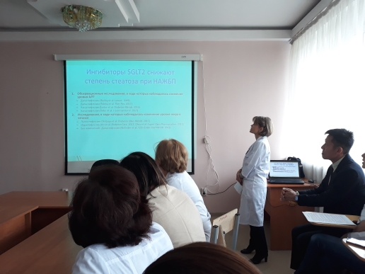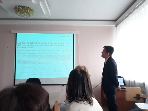 At the Round table with reports on modern ideas about the pathogenesis of NAFLD, promising methods of treatment, clinical and laboratory features of the disease were the staff of the Department of internal diseases №1: prof.. Doc. Zubova N. In. ass. Serkbay S. S.