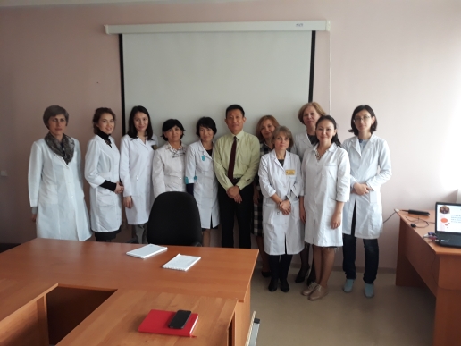 On October 11, 2018 on the basis of the University clinic №2 employees of the Department of internal diseases №1 held a Round table on the topic: “Modern management of non-alcoholic fatty liver disease.” The moderator of the Round table was Professor Emeritus of KazNMU Atsumasa Komori (Nagasaki medical center, Japan).