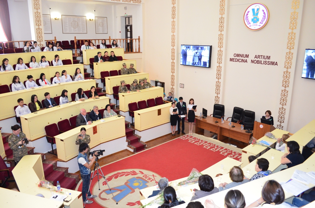 Ішкі аурулар пропедевтикасы кафедрасы қызметкерлері ЖМ факультетінің тьюторлық 3 курс студенттерімен бірге,«Ұлы Отан Соғысы Жеңісіне 70 жыл» қарсаңында, 29.04.2015ж. «Даңқ залында» Ұлы Отан Соғысы ардагері, АГМИ проректоры, ішкі аурулар пропедевтикасы кафедрасының меңгерушісі (1964-1986жж.) Николай Николаевич Кучиннің 95 жылдығына арналған конференция өткізді.