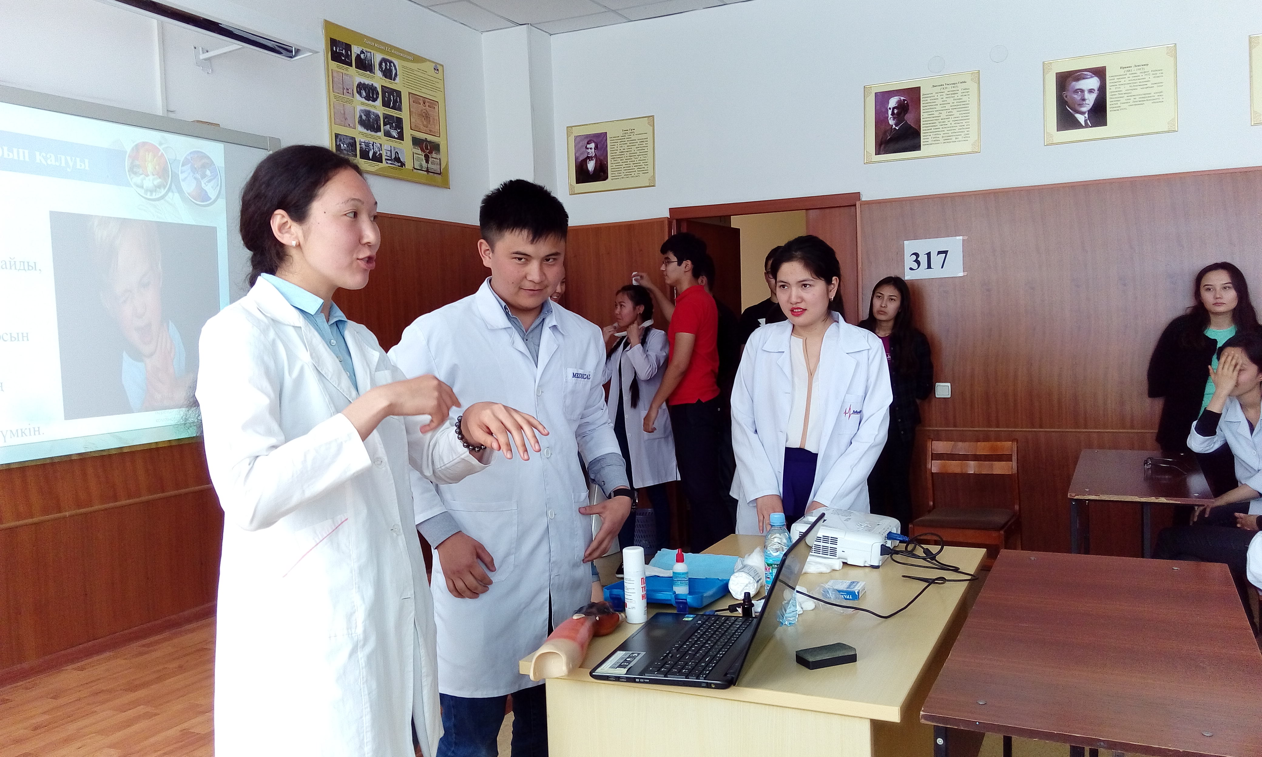 Prof.Akhmetova G.D. – Head of the Supervisory Board of the SUE at the EM AMEC. Assoc. Almukhambetov M.K. member of the Personnel Council at the AMEC. Assistant Turlanova A.K. is an expert doctor at the WW II polyclinic. The assistants of the department are members of the methodological bureau at AMEC substations.