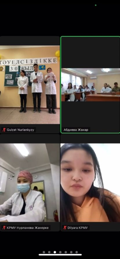 Students of groups (PH 20-001-02 k) School of Public Health attended the event, (GM 21-011-01) School of General Medicine named after Asfendiyarov S.D. – Ersainova Amangul, Algabaev Yeldos. Also, students of 1st course of General Medicine school (GM 21-011-2) Khabasov Ruslan, Shimova Erkezhan, Nurkhmetova Zhanerke from Medical University of Semey and students of 1st course of General Medicine school (GM 109B, 106B) Zhanerke Nurlanova, Shavkat Rajapov, Asylzhan Asiltas, Yernur Kalimulla, Shadyam Saverdinova, Darkhan Saparbek) Kazakh-Russian Medical University, Almaty.