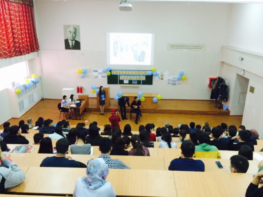 24 ноября 2015 года студентами 13-028-01 группы III курса факультета «Общая медицина» под руководством ППС модуля нормальной физиологии был организован и проведен праздник, посвященный Дню Независимости Республики Казахстан «Тәуелсіздік – тұғырым» в аудитории №4 с приглашением проректора по учебно-воспитательной работе К.А.Тулебаева, начальника управления по воспитательной и социальной работе М.Т.Султановой, директора департамента «Базовых дисциплин» К.К.Мустафиной, директора центра интегрированного обучения Г.М.Есенжановой, начальника ОП и КУП (учебная часть) К.Е.Куангалиевой, декана факультета «Общая медицина» Р.Т.Джумашевой, сотрудников деканата факультета «Общая медицина»: заместителя декана 3 курса и по воспитательной работе Ж.Ж.Курмангалиевой, руководителя модуля гистологии Н.М.Тусуповой. Ответственные за мероприятие и студенты 13-028-01 группы III курса факультета «Общая медицина» показали обычаи, национальную одежду и украшения казахского народа, любовь к Родине, чувство патриотизма, что и явилось целью проведенного вечера.