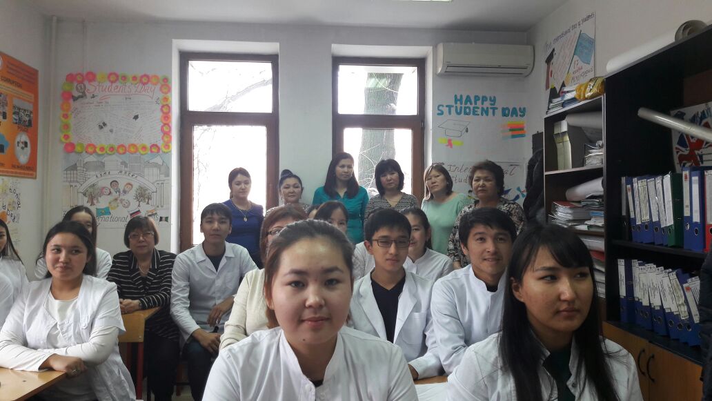Целью этого мероприятия явилось: познакомить студентов с историей праздника 8 марта, с известными женщинами мира и Казахстана, развить нравственно-позновательные интересы. На данном мероприятие присутствовали зав.кафедрой, доцент Сулейменова О.Я. и завуч кафедры Садыкова А.А. Студенты факультета «Фармация» группы 13-003 (2),факультета «Общая медицина»группы 16-004(2) и факультета стоматология группы 16-002(2) принимали участие.