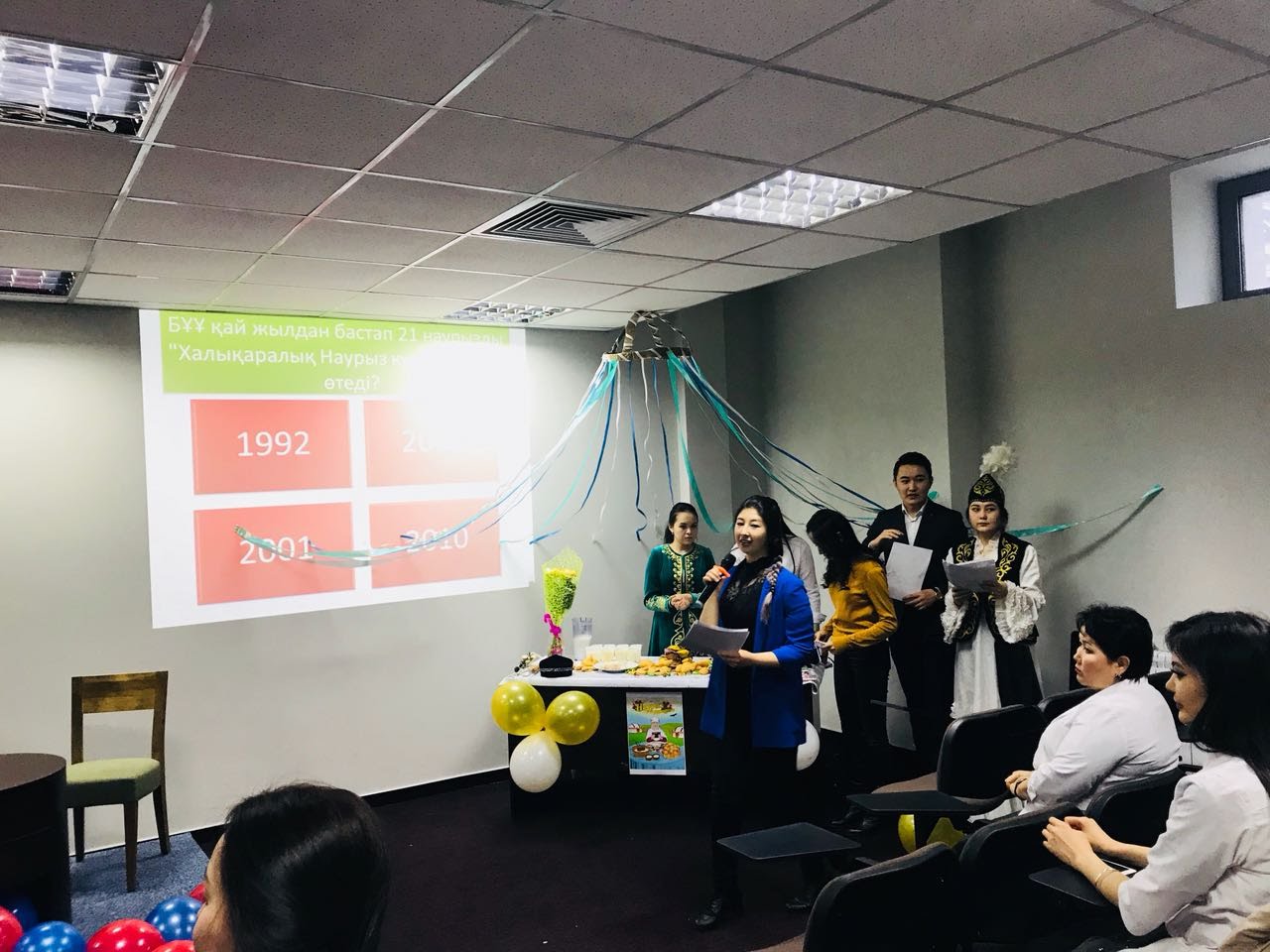 Дөңгелек үстелде Наурыз мейрамының тарихы баяндалды. Студенттер өлең оқып,күй тартты. Қазақ халқының дәстурлеріне байланысты сұрақтар-жауап жүргізілді. Студенттер арасында қазақтың салтына сай айтыс ұйымдастырылды.