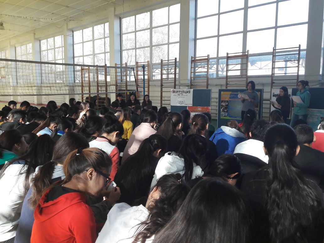 Студенттер жемқорлық тақырыбына байланысты өлең жолдарын оқыды. Би биледі. Өз өнерлерін көрсетті. Сонымен қатар, дөңгелек үстел барысында сұрақ-жауап, әңгімелер айтылды.