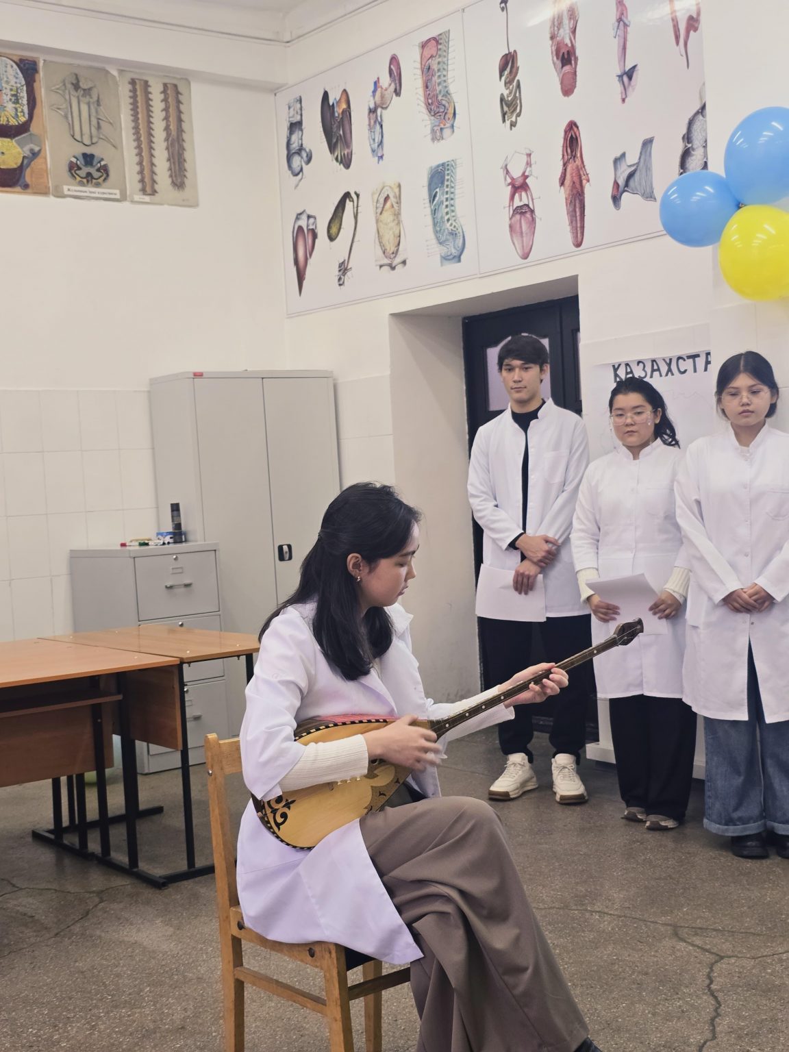 The event’s hosts, Saidulla Togzhan and Kairatov Alan (GM 25-047), first introduced those present to the historical events that led to independence. Following the historical information, the kyui “Konil tolkyny” was performed by Symbat Kulbaeva, a student from the Faculty of GM 25-005.