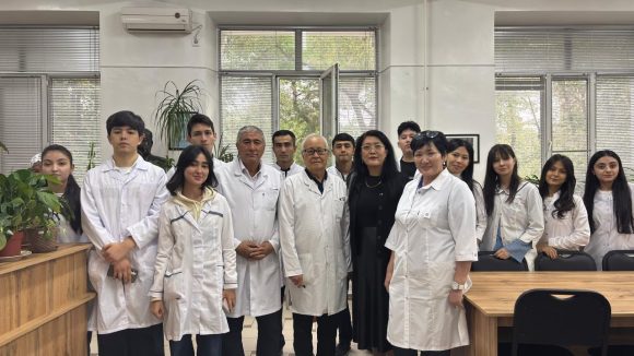 On September 18, 2025, in accordance with Board Decision №24 of November 3, 2023, approved by the academic policy (Section 10), second-year students majoring in General Medicine from the Institute of Pharmacy Education and Research of the Republic of Uzbekistan visited the Department of Normal Anatomy at S.D. Asfendiyarov Kazakh National Medical University as part of their academic mobility program. The guests were accompanied by Rimma Toleukhanovna Tagirova, Deputy Dean of School №1. During the reception, Department Head Akhmad N.S. introduced the faculty. Department Professor T.M. Dosayev led a tour, introducing the 95-year history of the Department of Anatomy and its educational and research facilities. The students visited the bone museum, the museum of moulages, wet mounts, and the simulation room housing biosynthetic mannequins. Later in the same hall, Professor T.M. Dosaev gave a lecture on “Modern Trends in Anatomy Teaching.”
