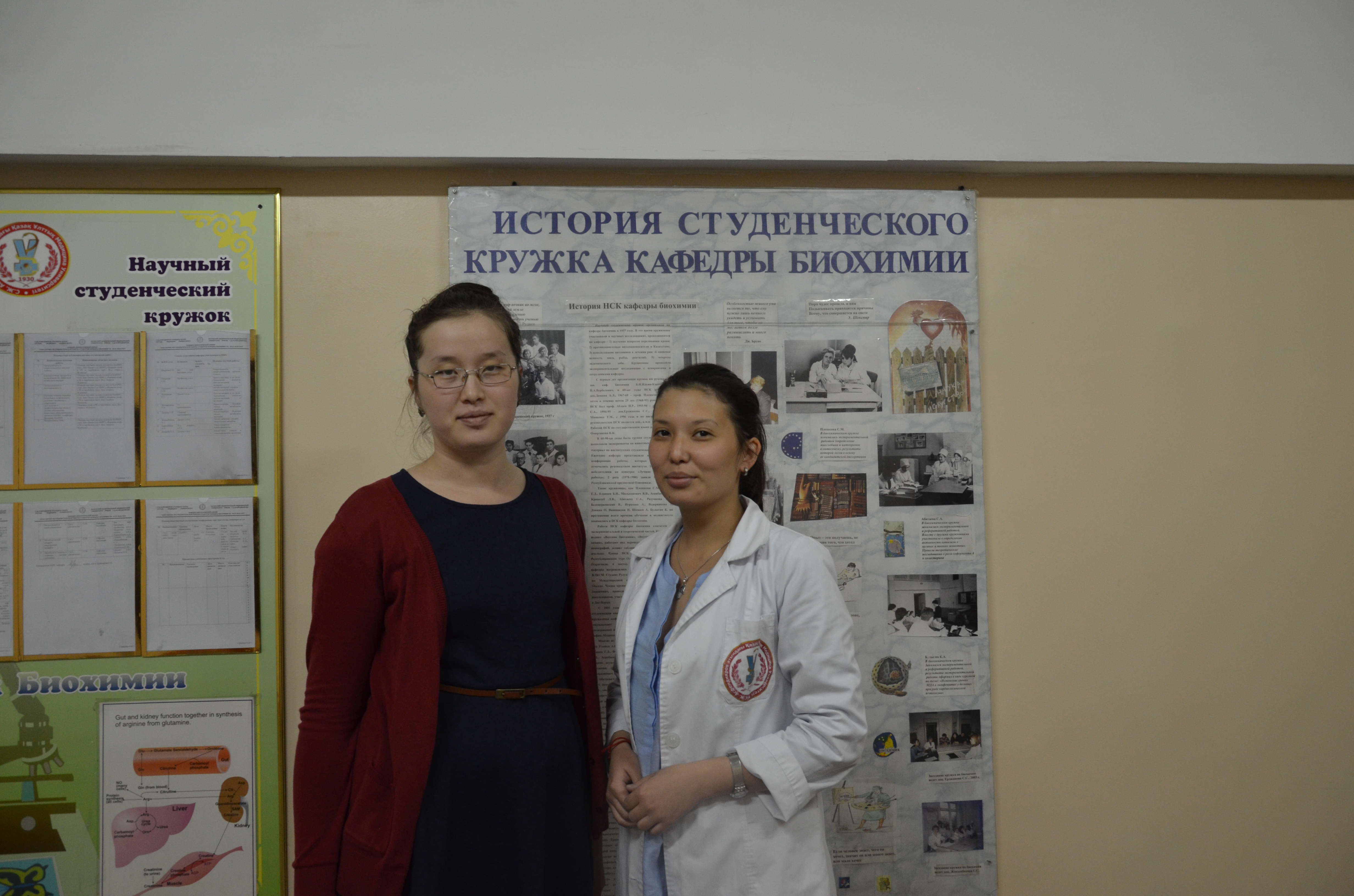 22 октября 2015г состоялось первое заседание научного студенческого кружка по биохимии на тему: «Простагландины и их роль. Применение аналогов простагландинов в медицине» под руководством доцента кафедры биохимии Ерджановой С.С. На заседании присутствовали заведующий кафедрой биохимии Шарипов К.О., преподавательский состав кафедры: Булыгин К.А., ЖакыпбековаС.С., Яхин Р.Ф. и студенты-члены кружка. При всеобщем голосовании председателем и заместителем председателя кружка были избраны студенты 5 курса Жанен З. и Ускенбаева А.А.