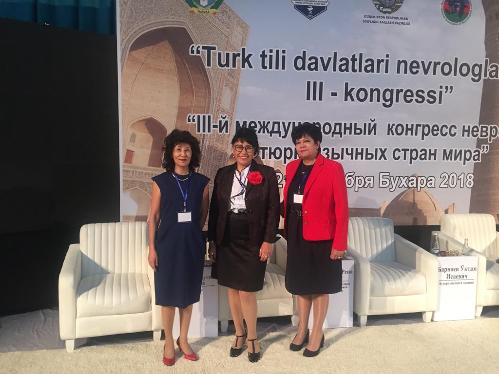 21 сентября 2018г в р. Узбекистан г. Бухара проведен III-й конгресс тюрк язычных стран мира., Конгресс явился активной платформой обмена опыта и знаний «братских» государств, которое в дальнейшем будет способствовать улучшению медицинской больным с заболеваниями нервной системы. В программу были включены актуальные вопросы и наиболее практически значимые заболевания нервной системы. В конгрессе приняла участие кафедра нервных болезней, с курсом нейрохирургии заведующая кафедрой Туруспекова С.Т. и доцент кафедры Избасарова А.Ш. Сотрудники выступили с докладами, в которых освятили вопросы нейрореабилитации травматической миелопатии и тревожных расстройств в неврологической практике.