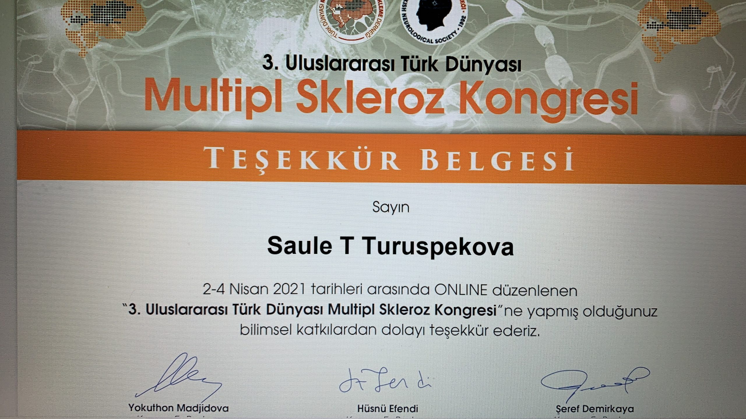 2-4 апреля  2021 года в Турции в г. Стамбуле состоялся  III  Международный конгресс стран тюркского мира по рассеянному склерозу.   Из-за продолжающейся пандемии коронавирусной инфекции конгресс был проведен в  виртуальном формате.