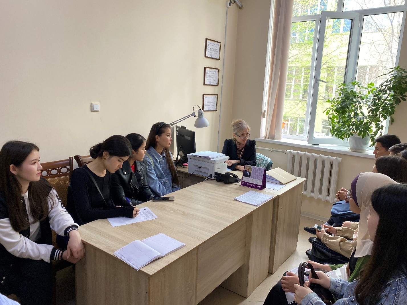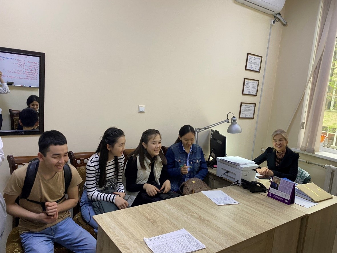 Жалпы медицина-1 мектебінің деканы Измайлова С.Х. 1 курс студенттерімен кезекті кезесуін бастады. Кездесуде оқу үрдісі, жатақханада тұру ережесі, стипендия және студенттердің қысқы және жазға каникул кезінде төленетін жол ақысы туралы қайталап айтып өтті. Адалдық кодексін бұзбау қажеттігінде тағыда атап өтті.