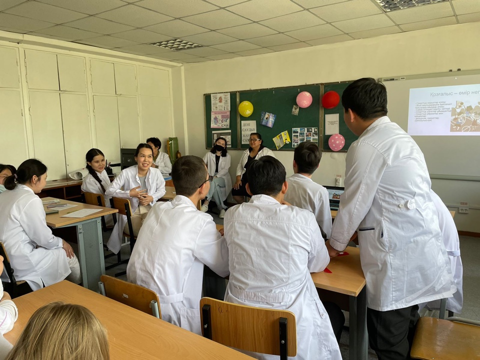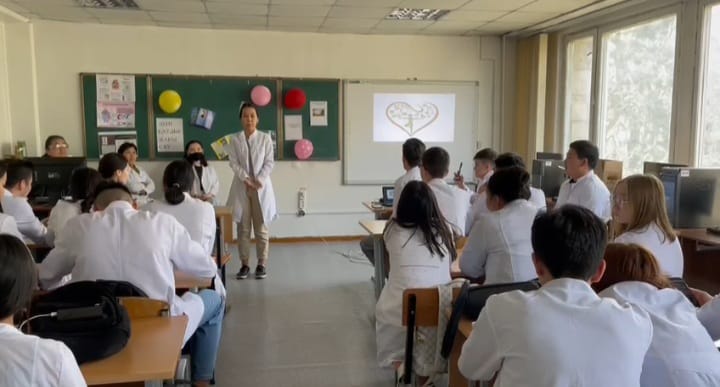Дүниежүзілік денсаулық күніне орай 07.04.2022 күні «Биофизика курсымен қалыпты физиология» кафедрасының оқытушылары Алмабаева Н.М., Байдуллаева Г.Е., Усипбекова Д.И. «Жалпы медицина» мектебінің 1 курс, кураторлық топ студенттерімен біріге отырып «Денсаулық –зор байлық» тақырыбында дөңгелек стол өткізді. Топтың бөлінген екі топшасы:
