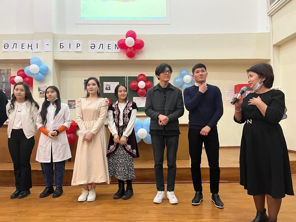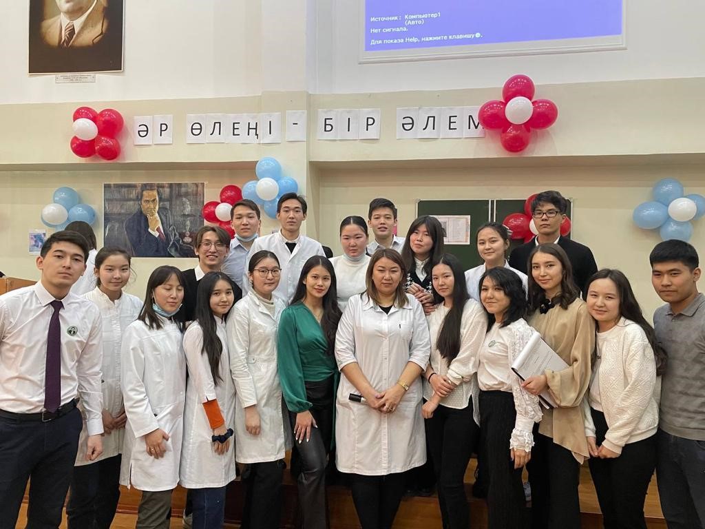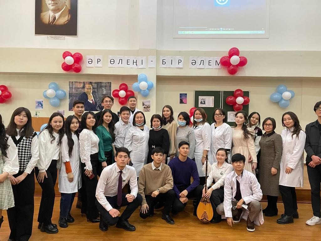 21.02.2022 ж. Жалпы Медицина-1 мектебінің молекулалық биология және медициналық генетика кафедрасының кураторлары Мустафаева А.Ж., Кашаганова Ж.А., Шайхымбекова Р.М. ұйымдастыруымен және ЖМ21-006, ЖМ21-007, ЖМ21-008 топ студенттерінің қатысуымен «Әр өлеңі – бір әлем» атты Мұқағали Мақатаевты еске алуға арналған іс-шарасы өткізілді.