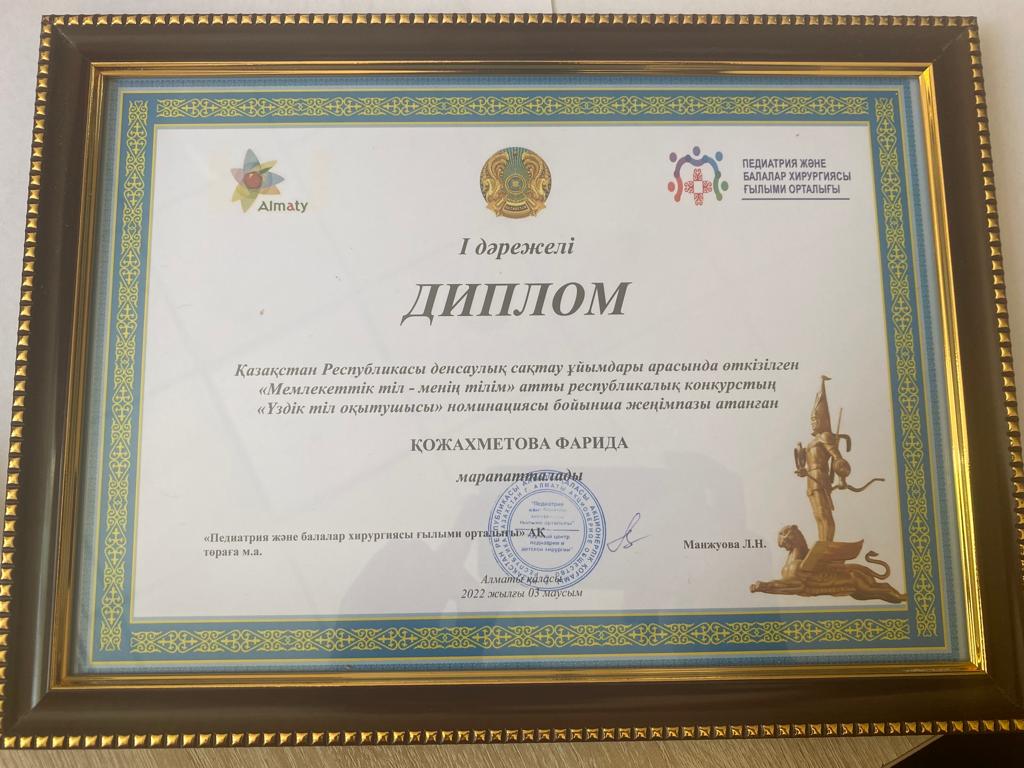 03.06.2022 жылы әл-Фараби атындағы ҚазҰУ кітапханасында «Қазақстан Республикасындағы тіл саясатын жүзеге асырудың 2020-2025 жылдарға арналған мемлекеттік бағдарламасын денсаулық сақтау жүйесінде іске асыру жөніндегі 2020-2025 жылдарға арналған іс-шаралар жоспарының» 10-тармағын орындау мақсатында ҚР Денсаулық сақтау министрлігінің «Педиатрия және балалар хирургиясы ғылыми орталығының» ұйымдастыруымен Денсаулық сақтау жүйесі қызметкерлерінің арасында ұйымдастырылған «Мемлекеттік тіл – менің тілім» атты республикалық конкурстың жеңімпаздарын марапаттау рәсімі өтті.