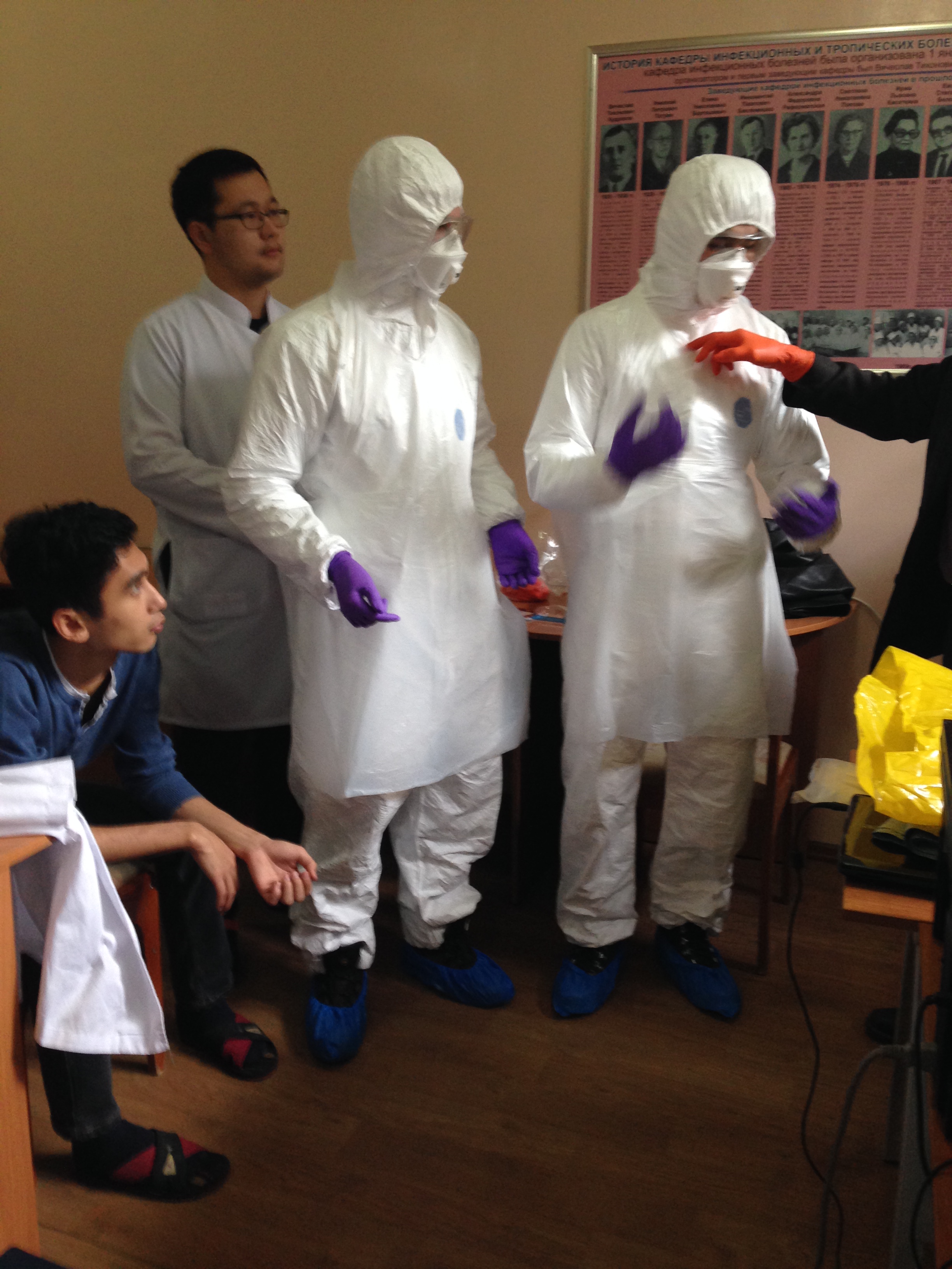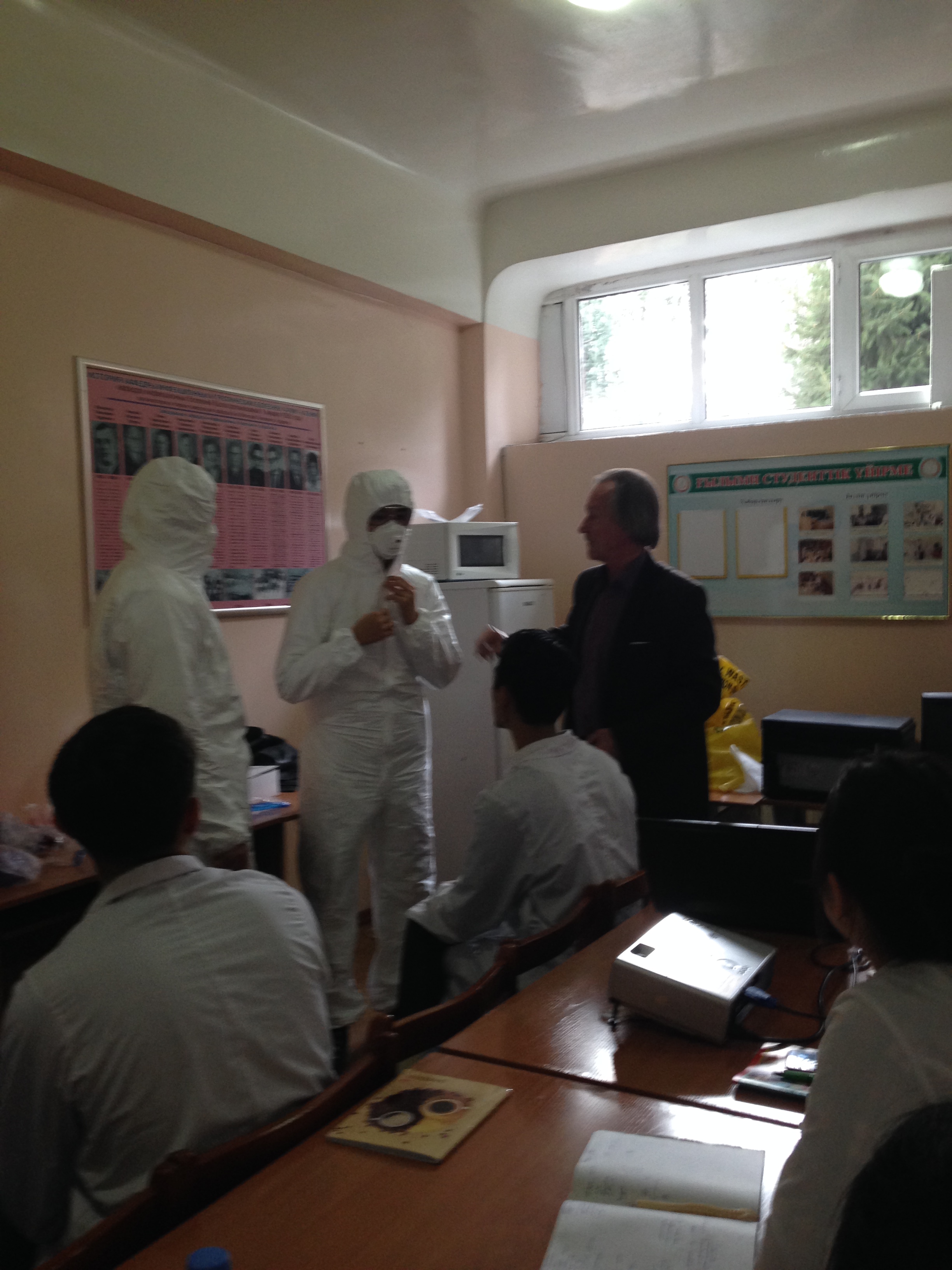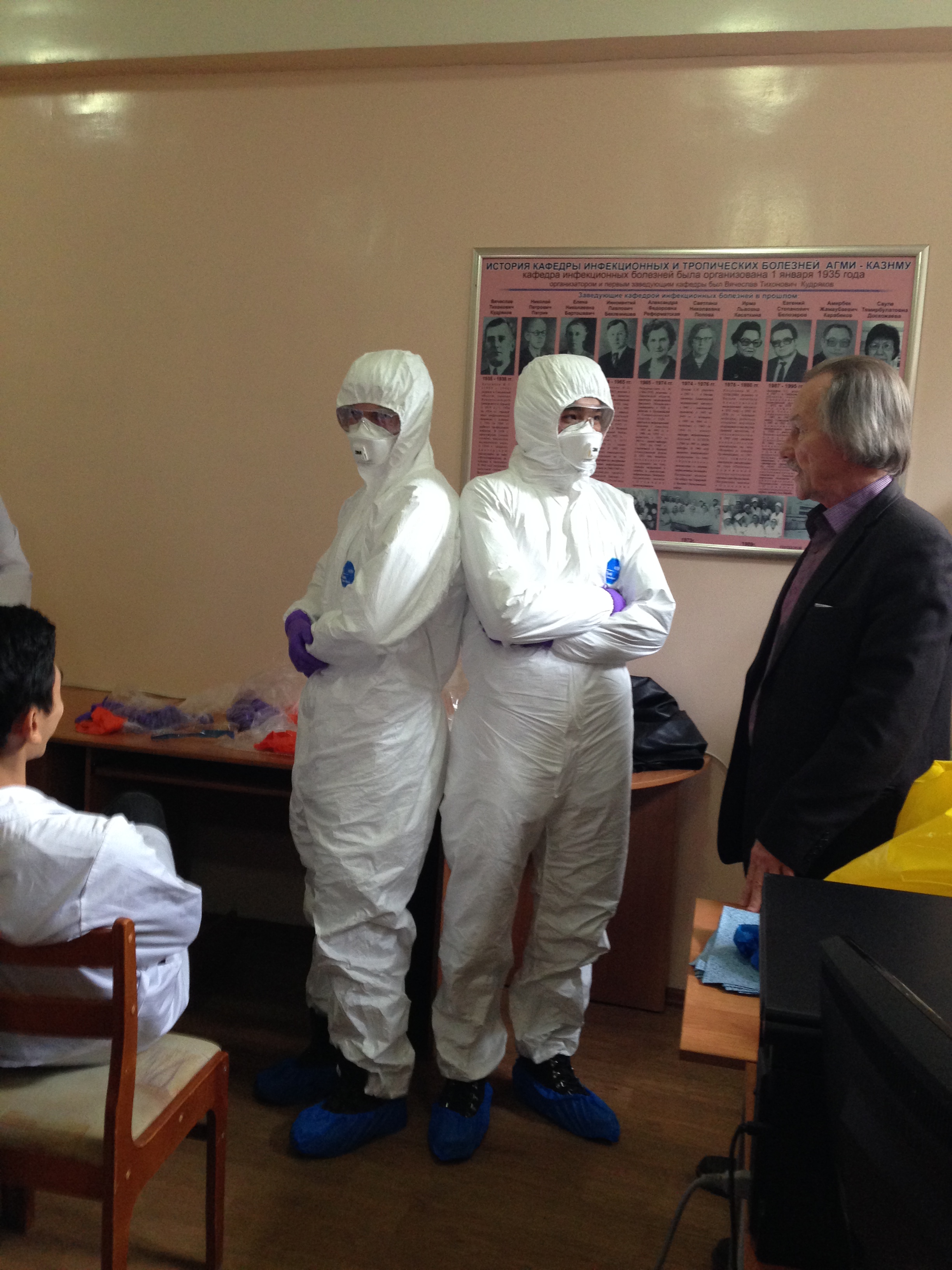 On 14th of November 2017 year, in the department of infectious and tropical diseases for the students of the IMF of 5th grade, 75-1,75-2,76-1 groups were read lecture on the theme “Introduction to biosafety, assessment of risk”, also  was made training with students on theme how use personal protective equipment.